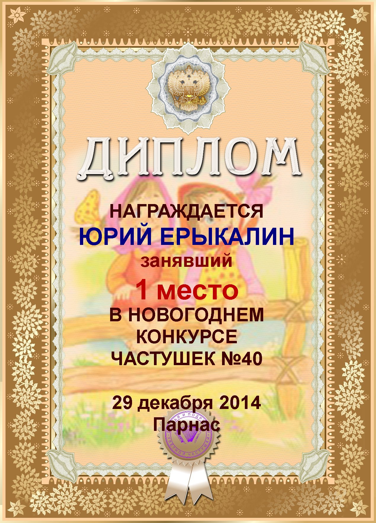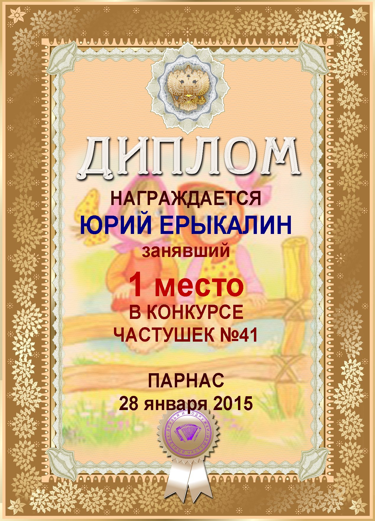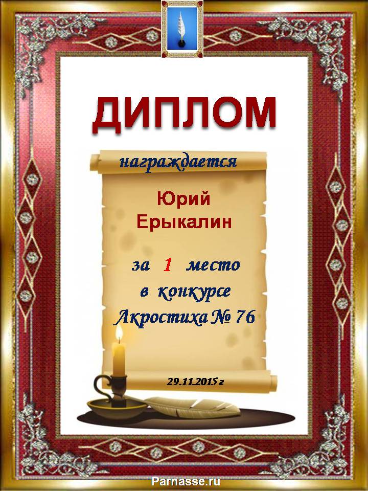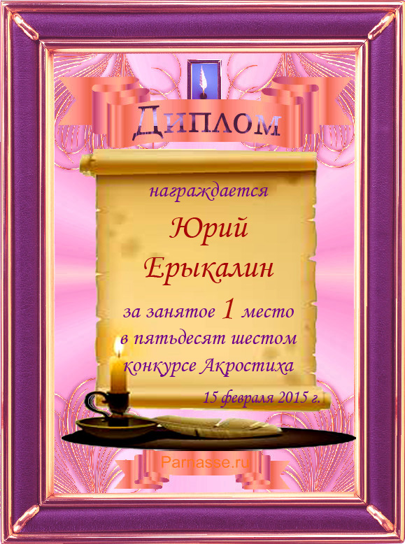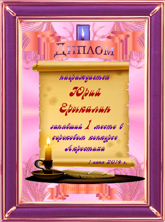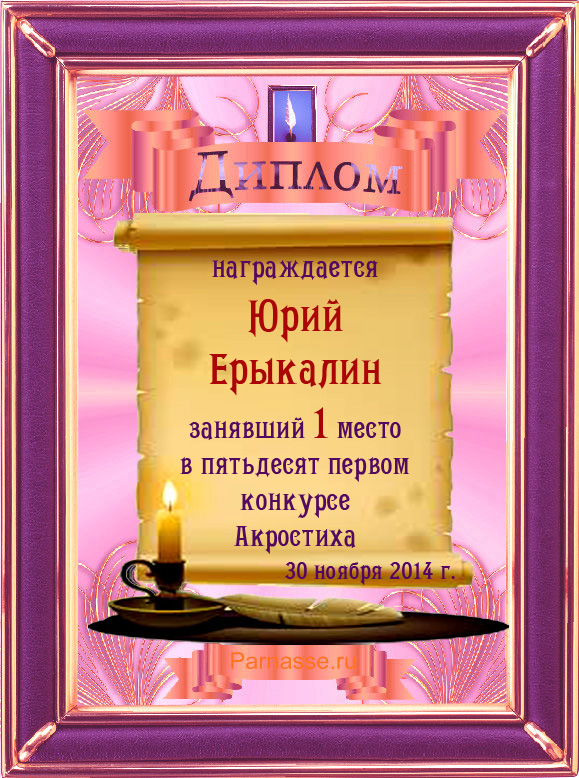 Диплом за 1 место во 2 годовом конкурсе Акростиха по итогам судейского голосования! ПОЗДРАВЛЯЮ!
