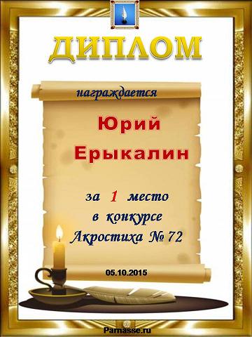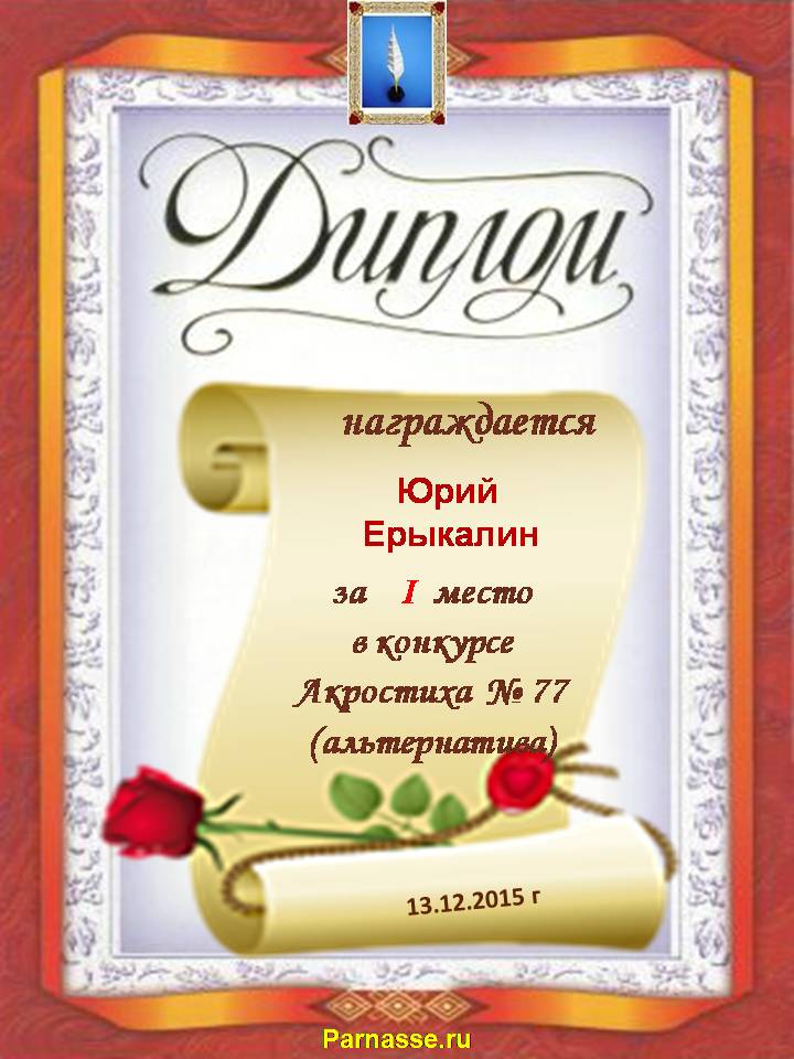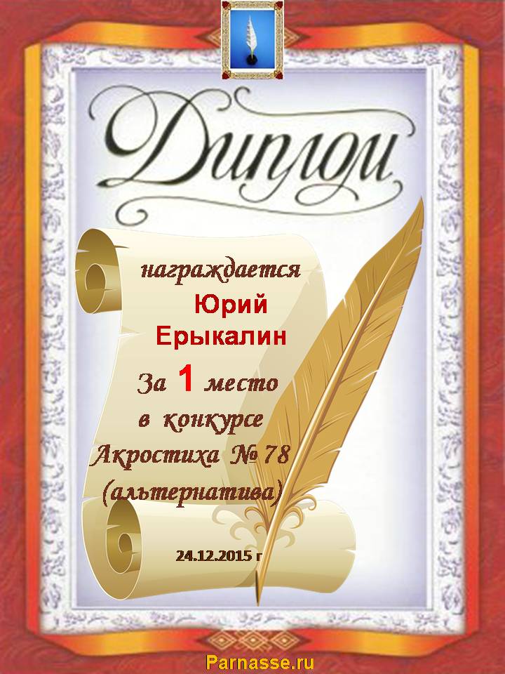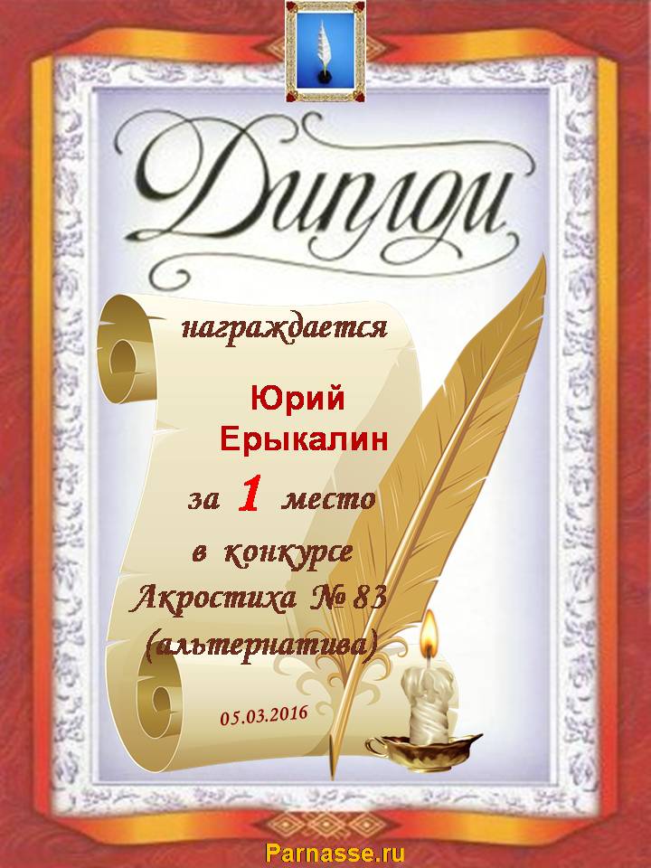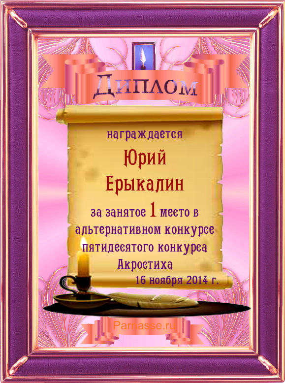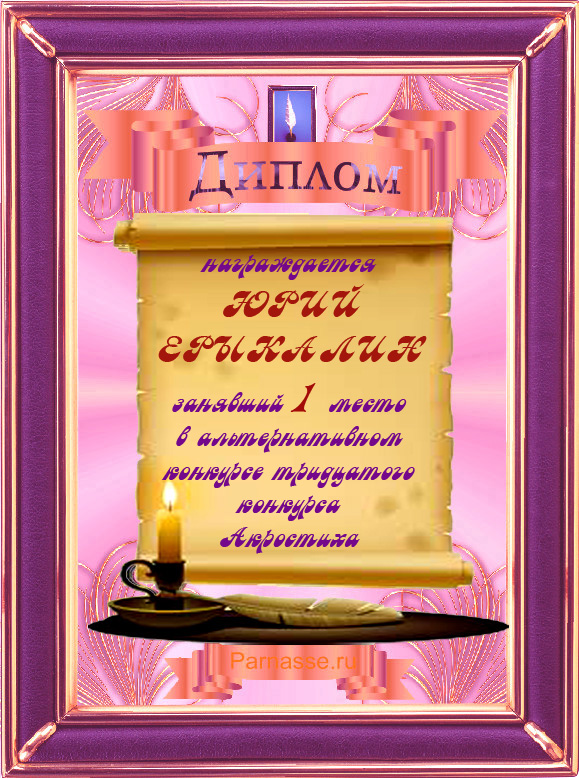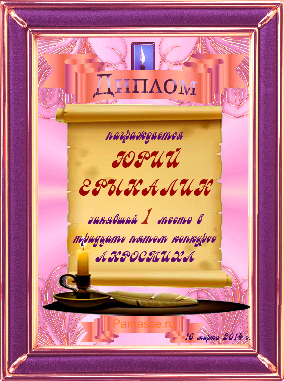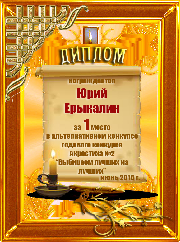 Диплом за 1 место во 2 годовом Альтернативном итоговом конкурсе АКРОСТИХА! ПОЗДРАВЛЯЮ!