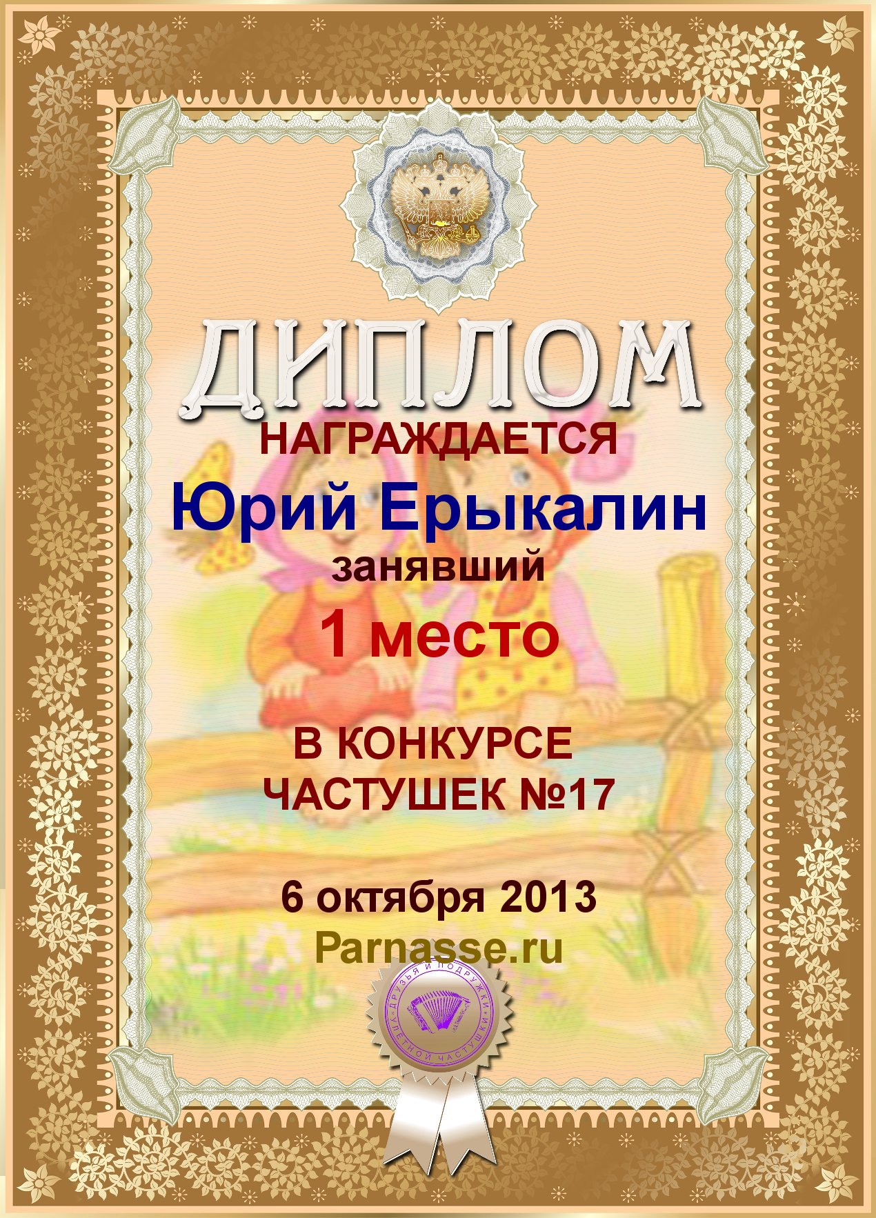 Диплом за 1 место в праздничном конкурсе "Поздравим Парнас с трёхлетием вместе!"