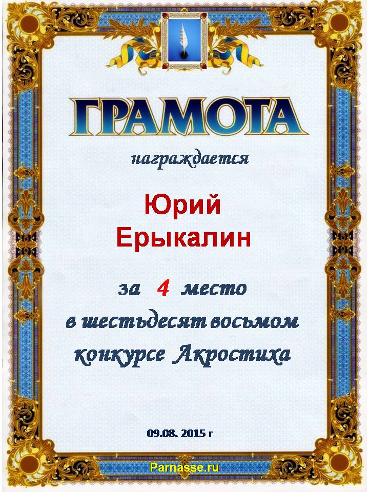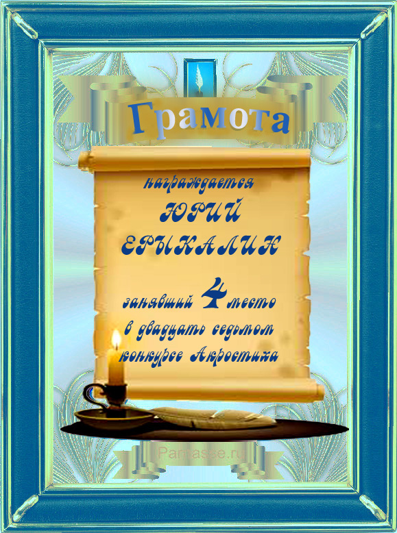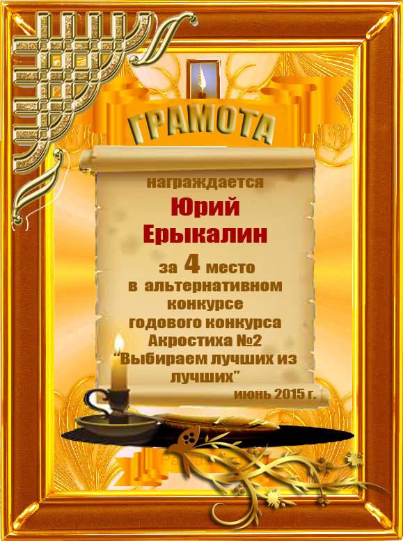 Грамота за 4 место во 2 годовом Альтернативном итоговом конкурсе АКРОСТИХА! ПОЗДРАВЛЯЮ!