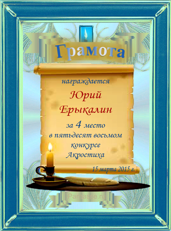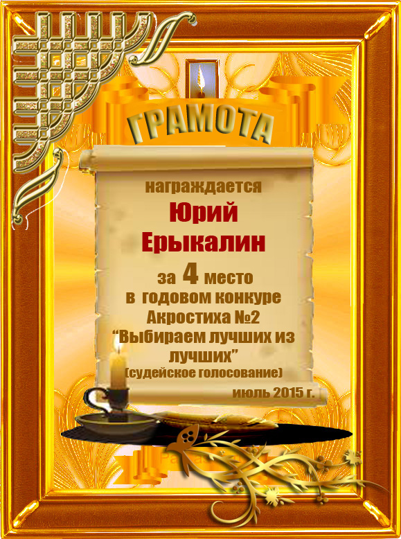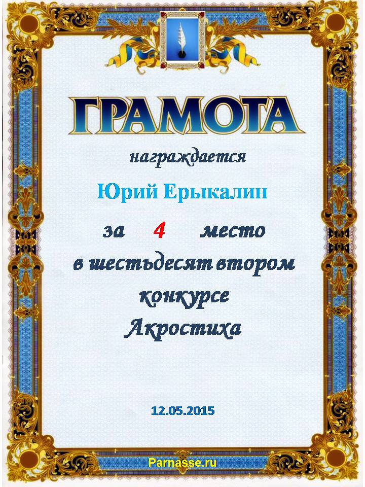 Грамота за 4 место во 2 годовом конкурсе Акростиха по итогам судейского голосования! ПОЗДРАВЛЯЮ!