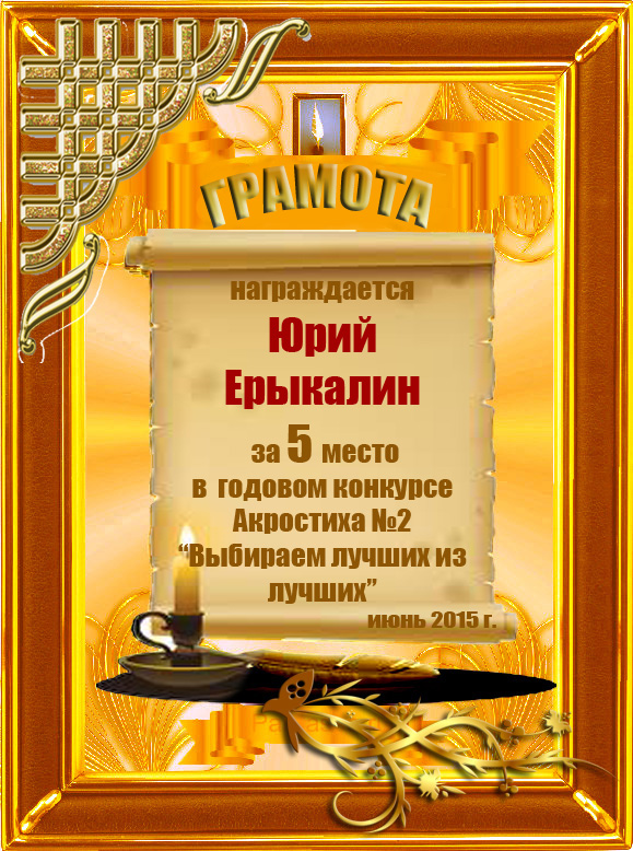 Грамота за 5 место во 2 годовом конкурсе Акростиха по итогам судейского голосования (Альтернатива)! ПОЗДРАВЛЯЮ!