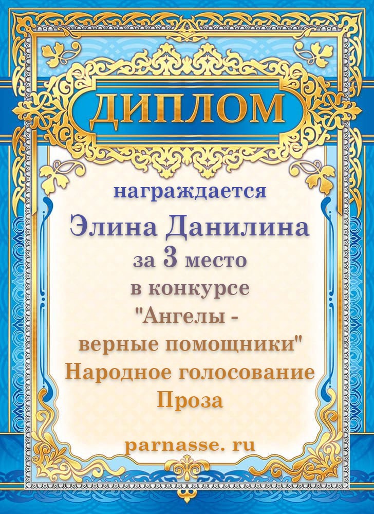 3 место в конкурсе "Ангелы -верные помощники". Народное голосование. Проза