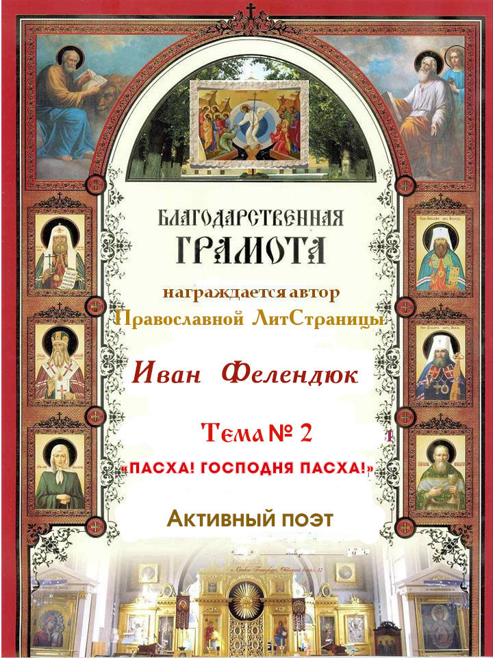 Православная ЛитСтраница. Тема № 2 "Пасха! Господня Пасха!" Номинация: Мужская поэзия.