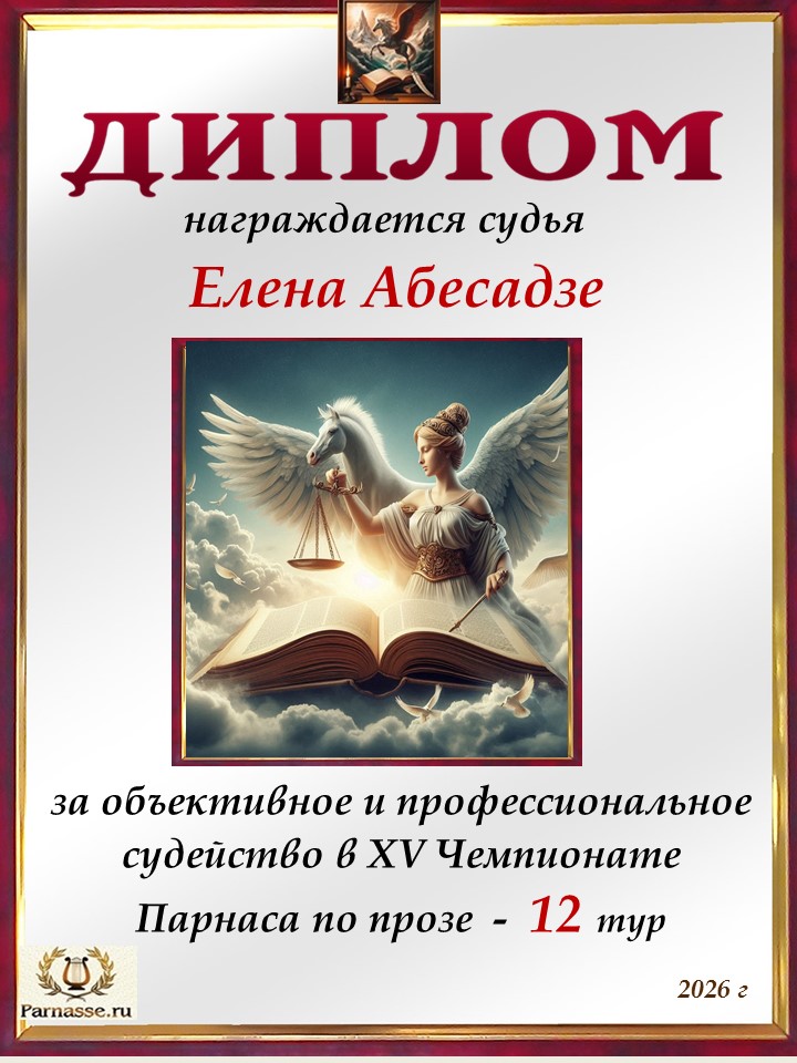 Спасибо за объективное и профессиональное судейство в 12 туре XIII Чемпионате Парнаса по прозе!