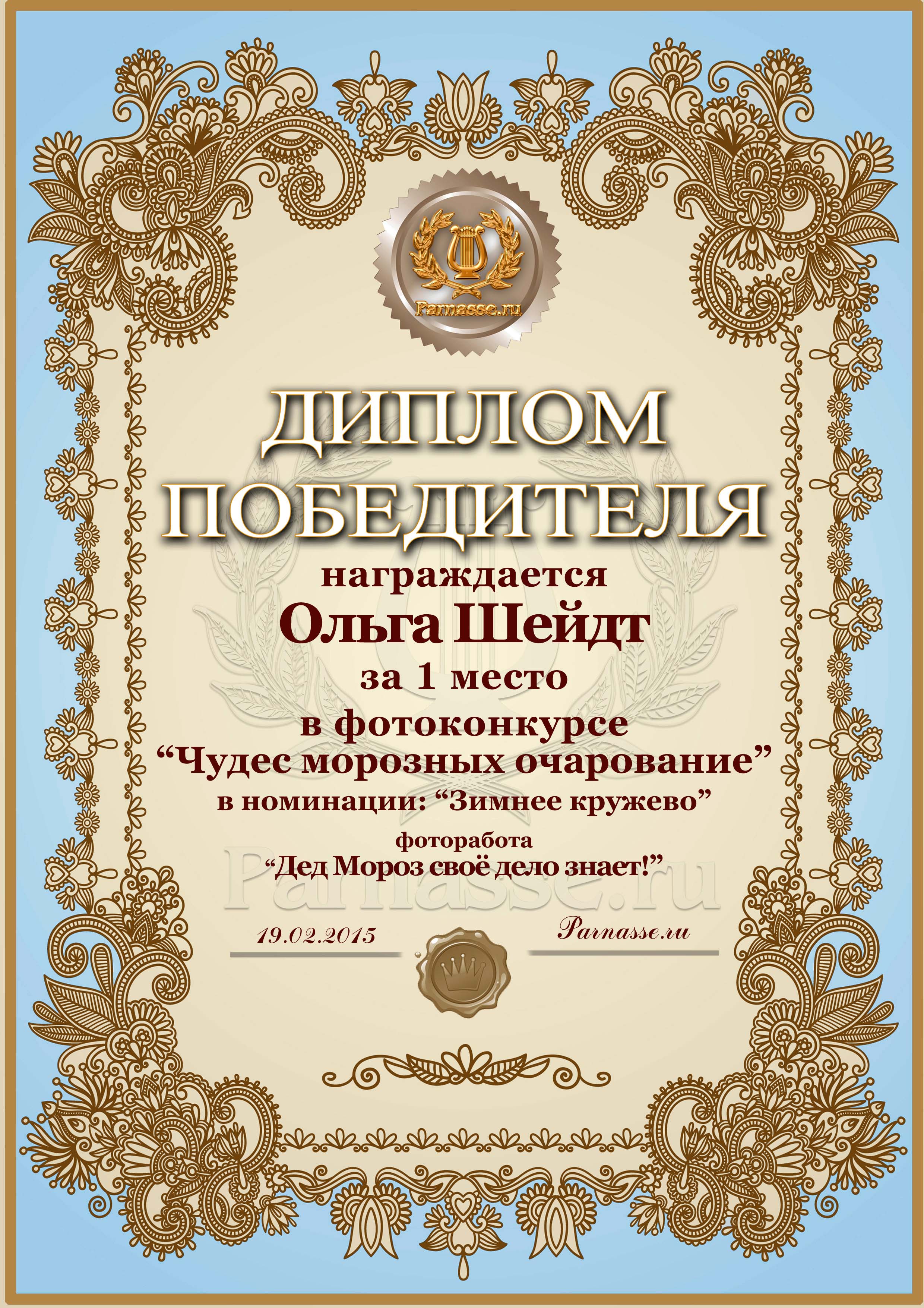 Диплом за 1 место в фотоконкурсе "Чудес морозных очарование"