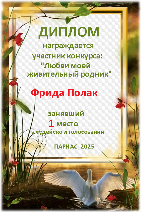 Уважаемая Фрида, поздравляем Вас с заслуженной победой!Счастья, любви и вдохновения!!!