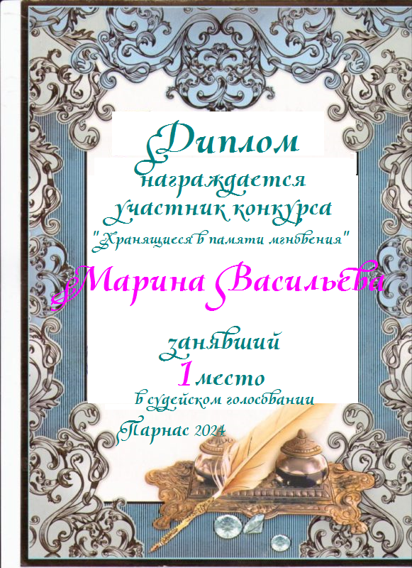 Первое место в судейском голосовании по итогам конкурса "Хранящиеся в памяти мгновения"