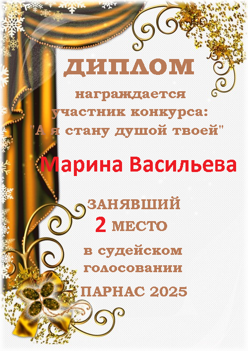 Второе место по итогам конкурса "А я стану душой твоей"