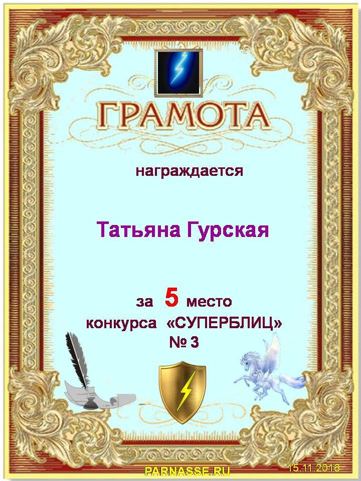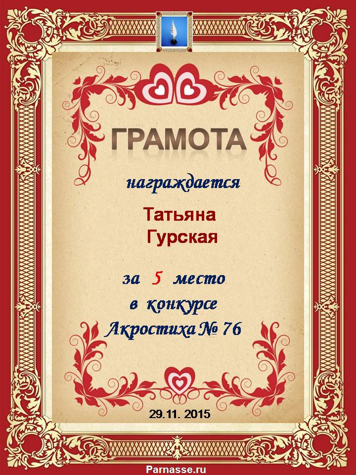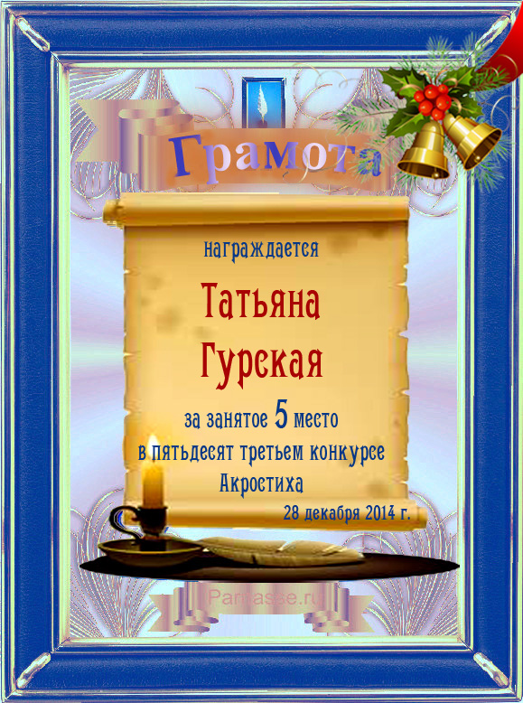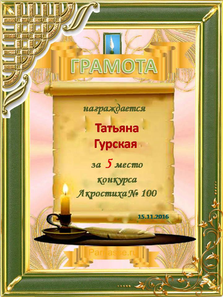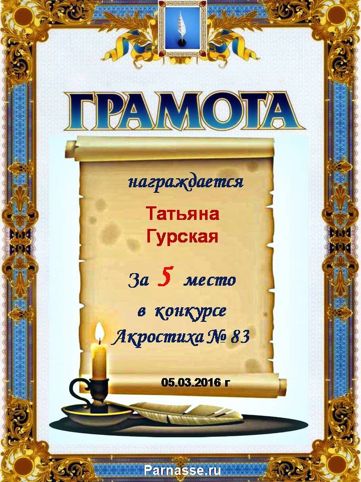 Грамота за 5 место в 110 конкурсе АКРОСТИХА (Альтернатива)! ПОЗДРАВЛЯЮ!