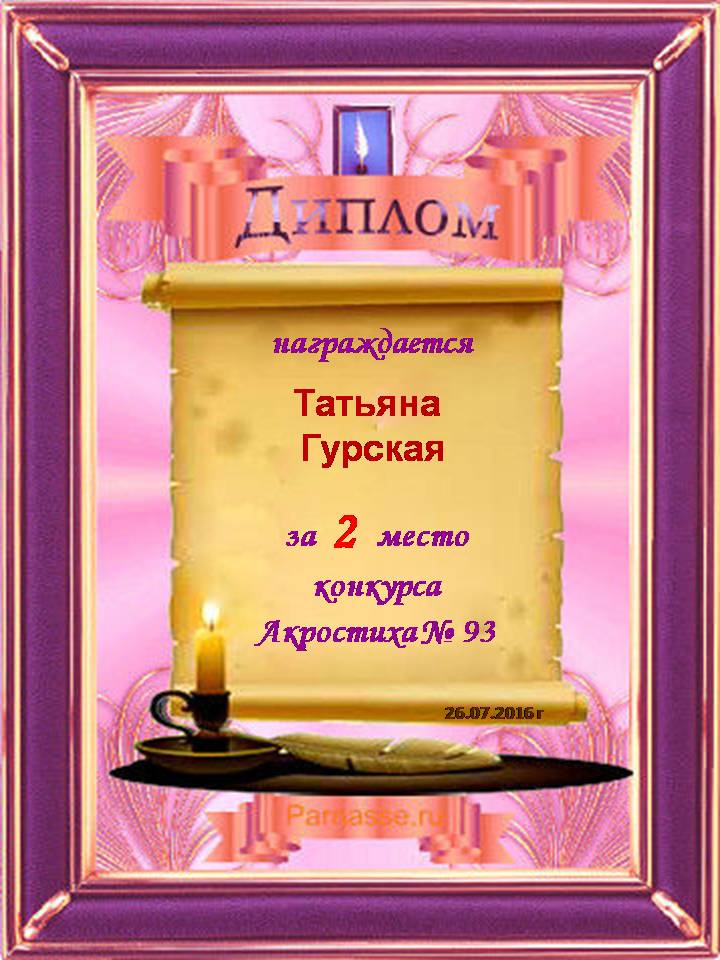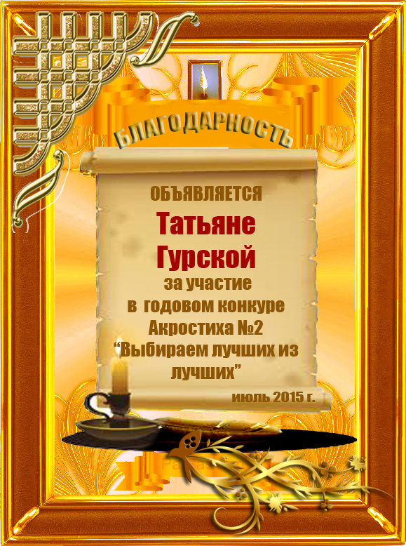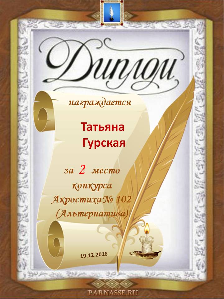Диплом за 2 место в 102 конкурсе АКРОСТИХА (Альтернатива)! ПОЗДРАВЛЯЮ!