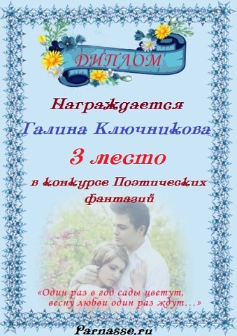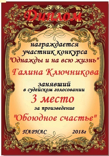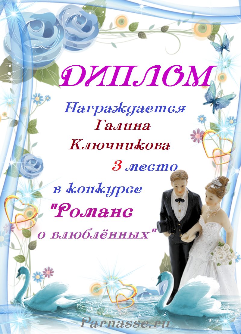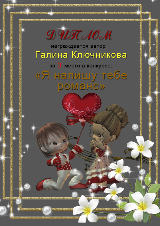 За 3 место в конкурсе"РОМАНС О ВЛЮБЛЁННЫХ"