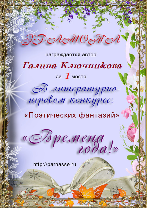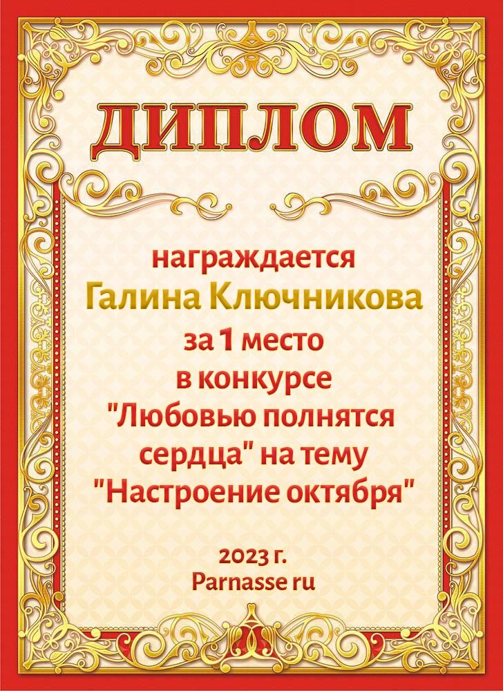1 место в конкурсе "Поэзия чувств". Поздравляем!