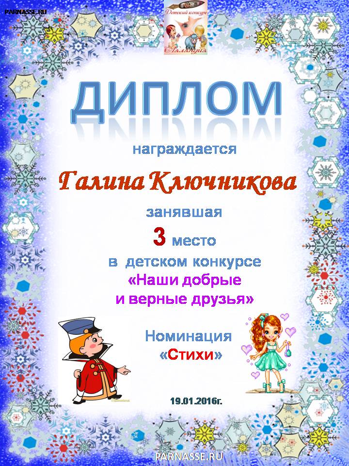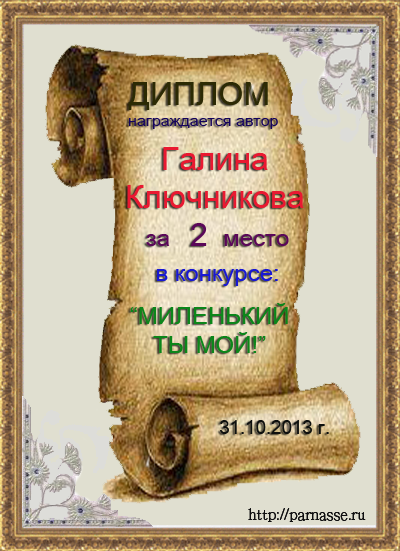 Второе место по итогам конкурса "Мой нежный и ласковый друг"