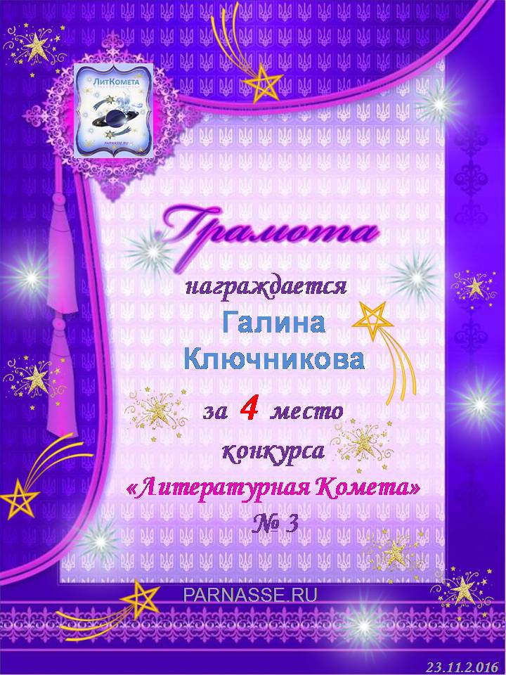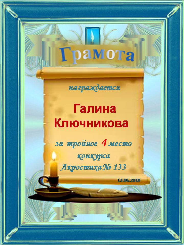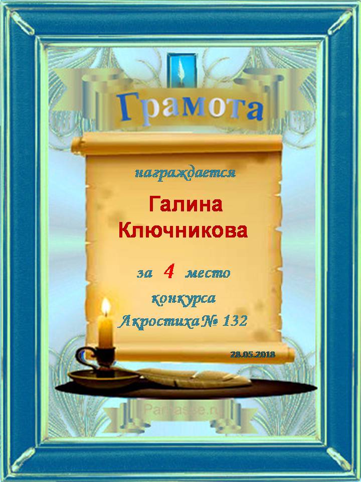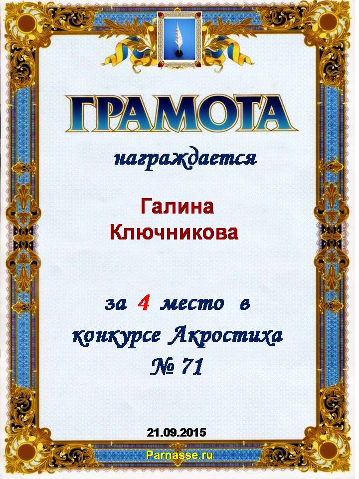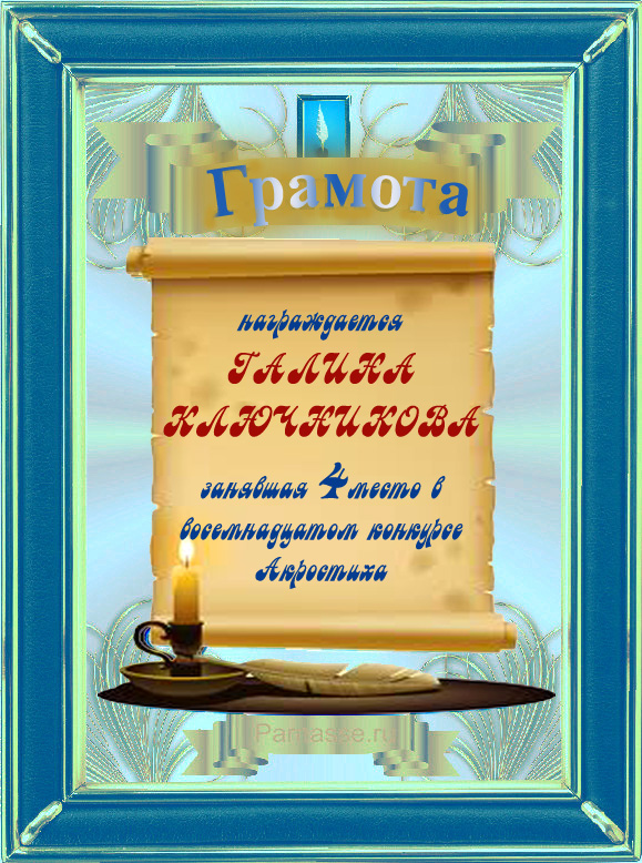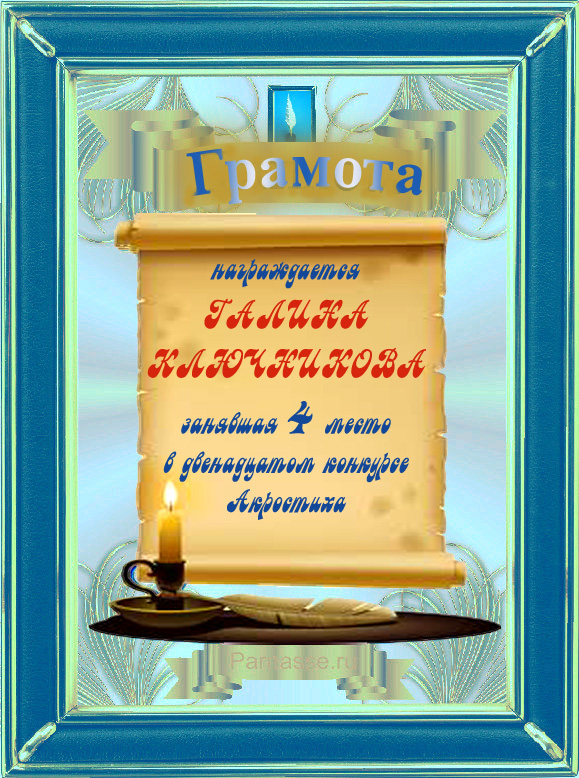 Грамота за 4 место в 97 конкурсе АКРОСТИХА (Альтернатива)! ПОЗДРАВЛЯЮ!