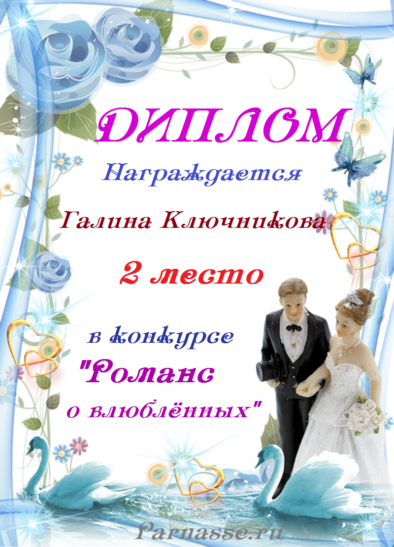 За 2 место в конкурсе"РОМАНС О ВЛЮБЛЁННЫХ"