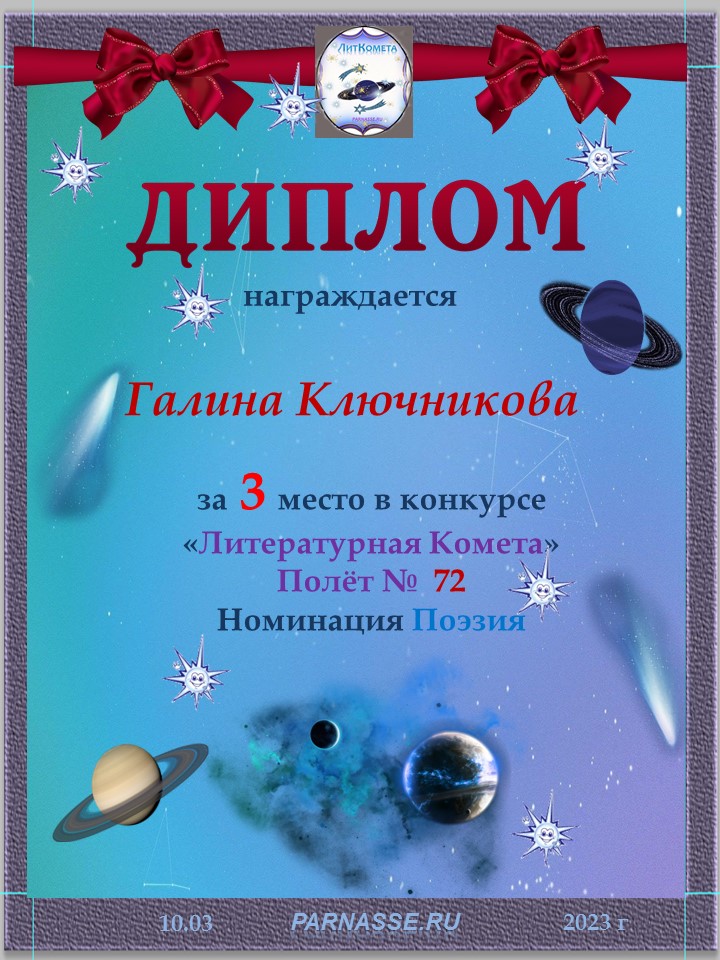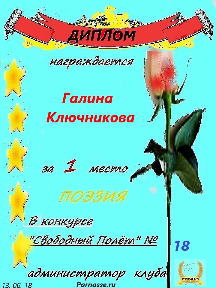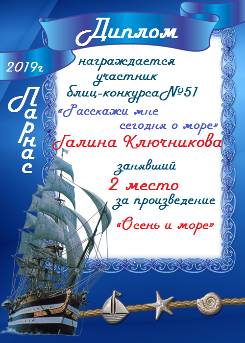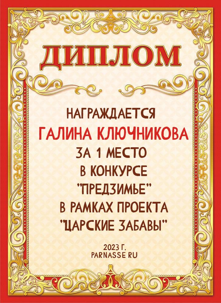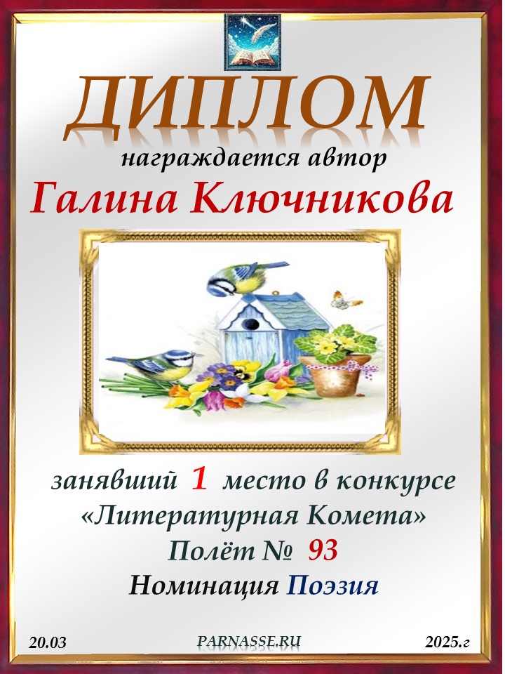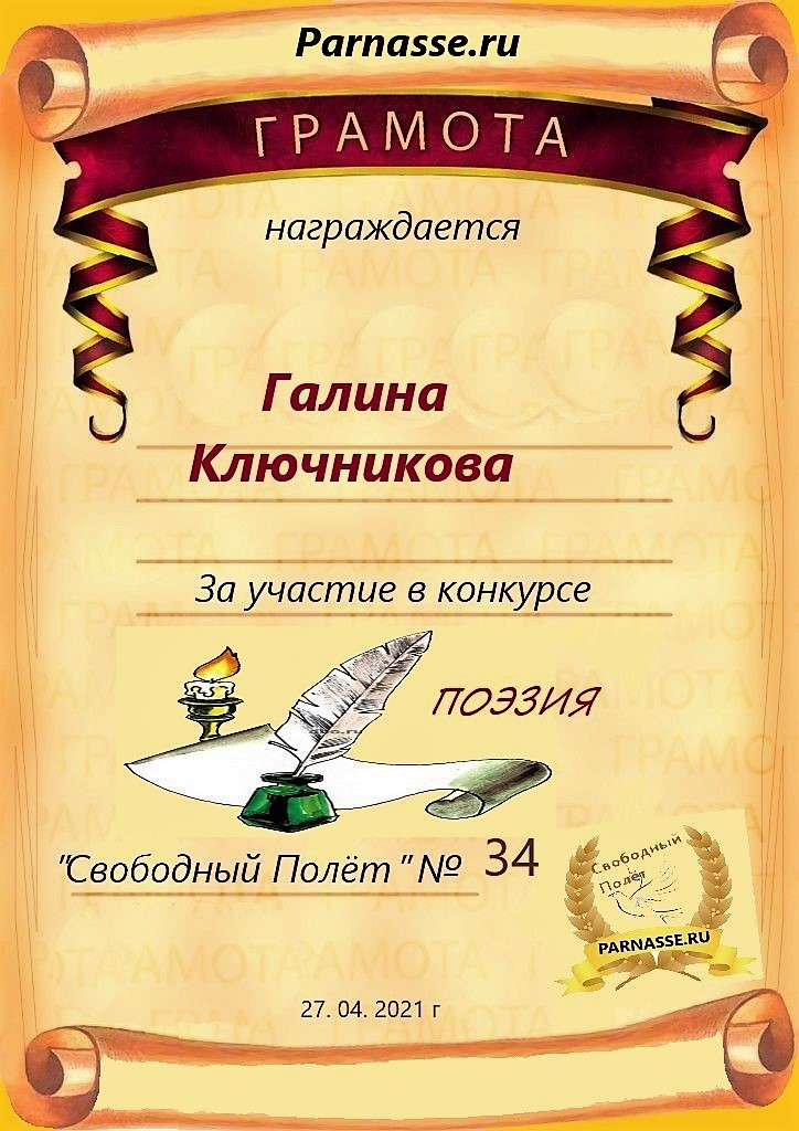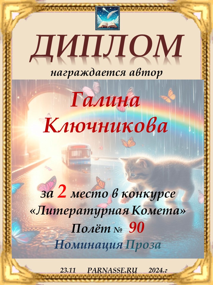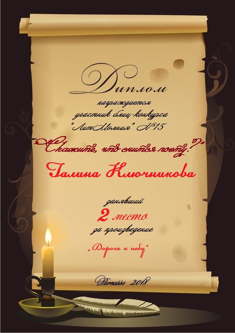 Диплом за 2 место в конкурсе авторского стиха №2 под названием "У каждого есть в жизни Берег Детства".ПОЗДРАВЛЯЕМ!