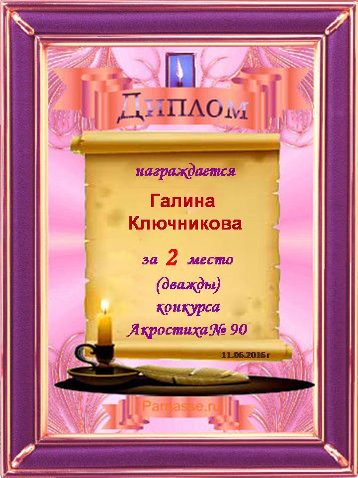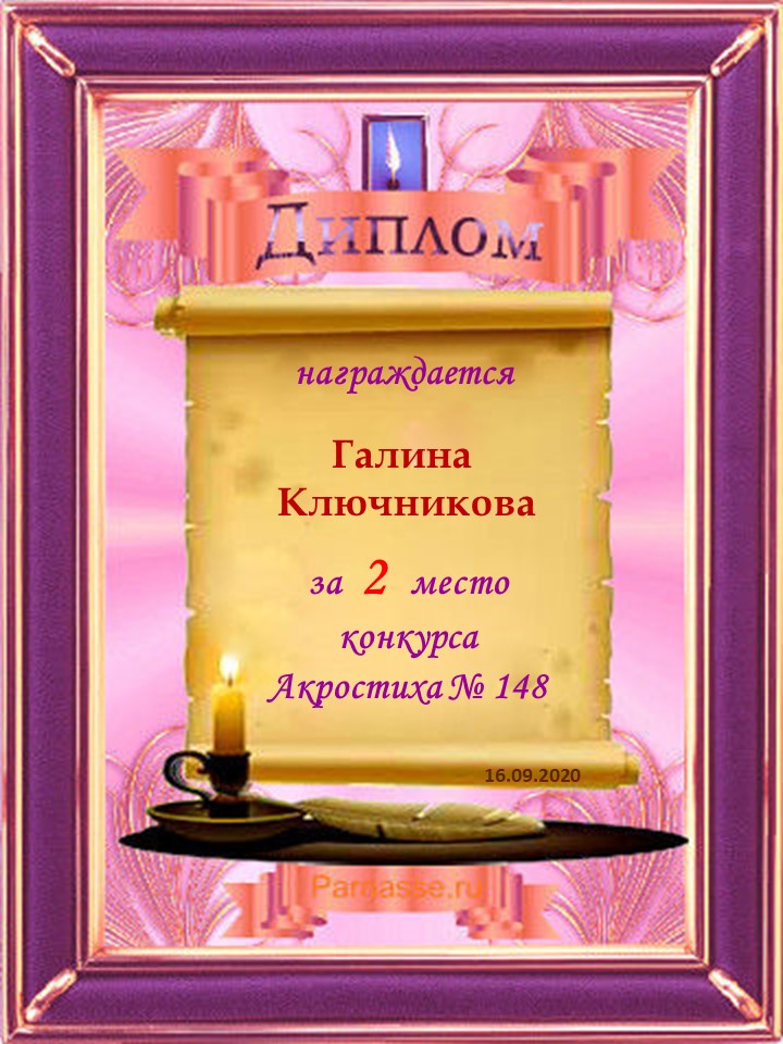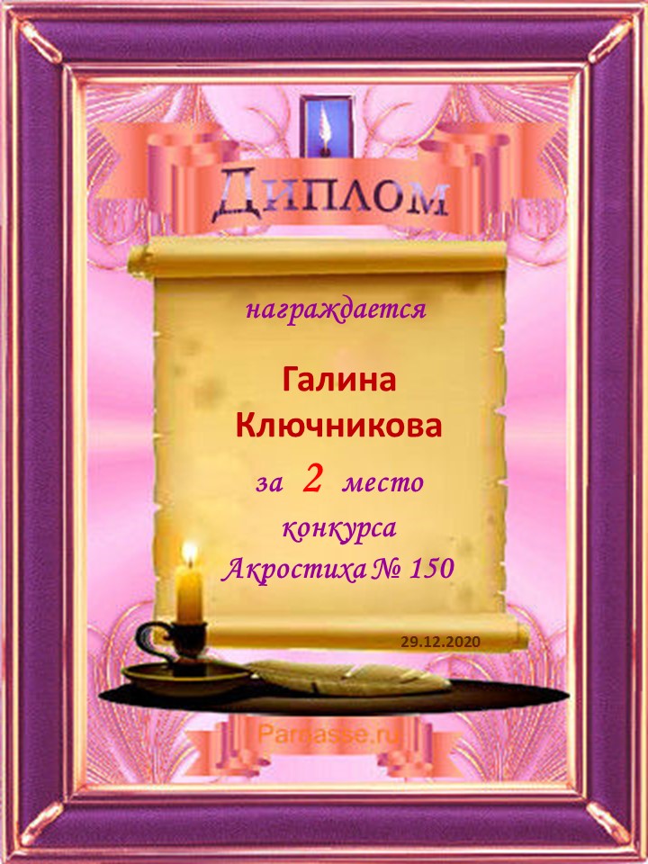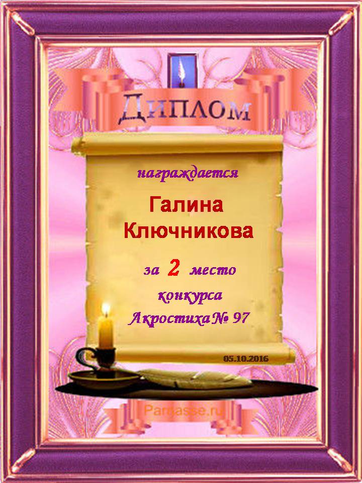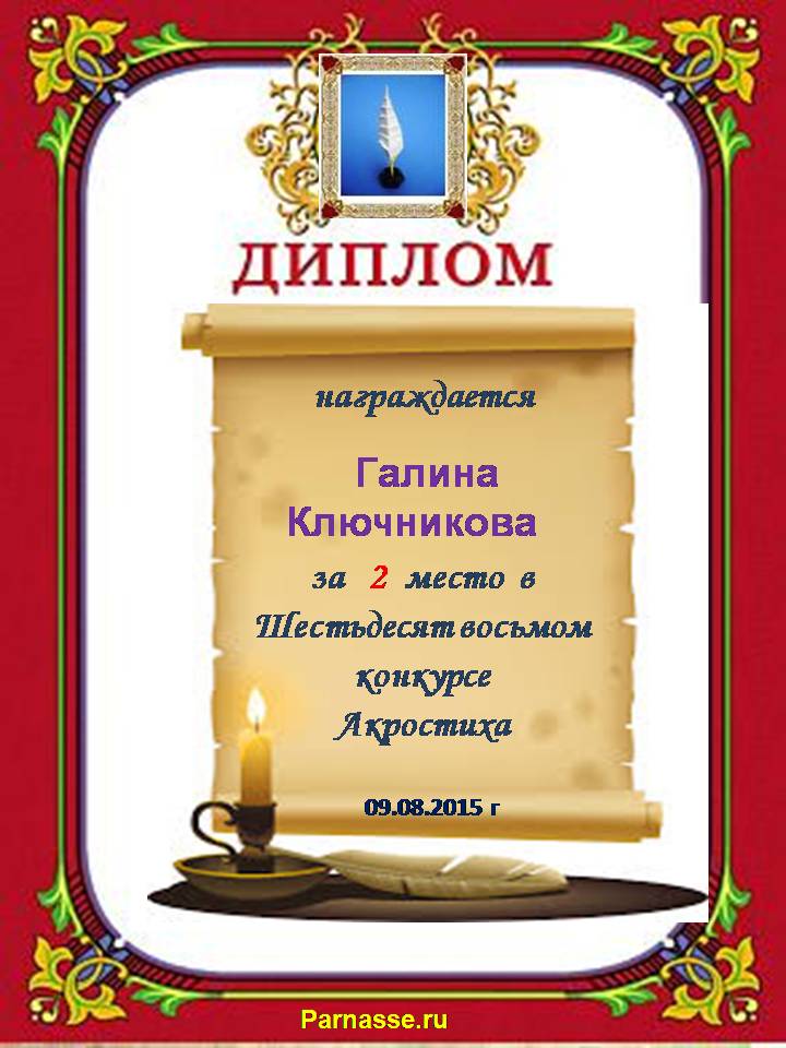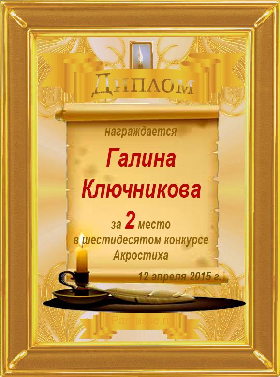 Диплом за 2 место во 2 годовом конкурсе Акростиха по итогам судейского голосования! ПОЗДРАВЛЯЮ!