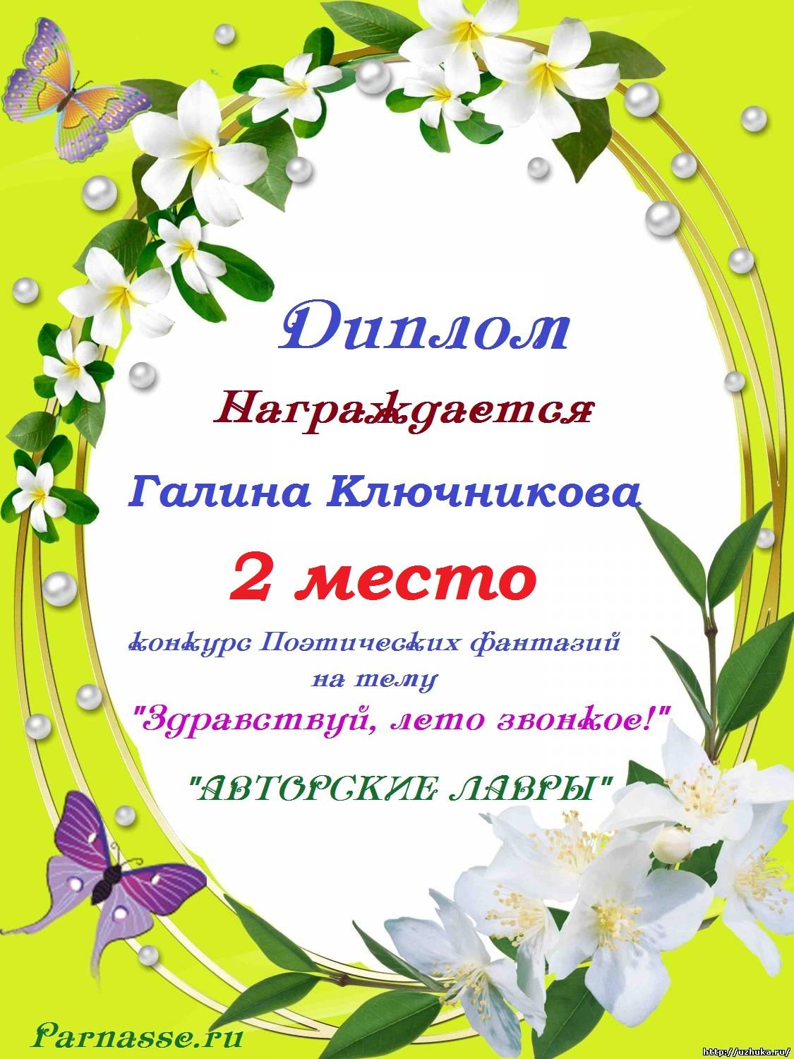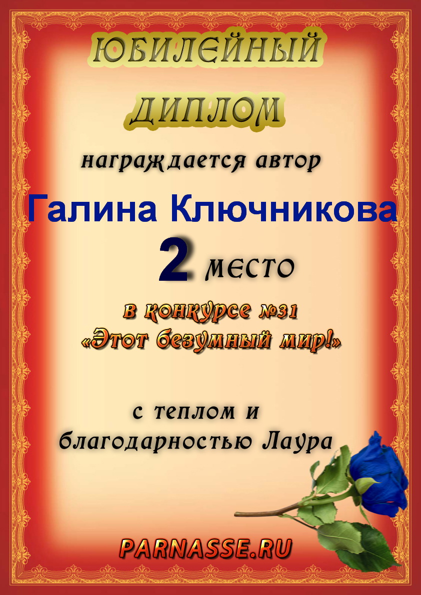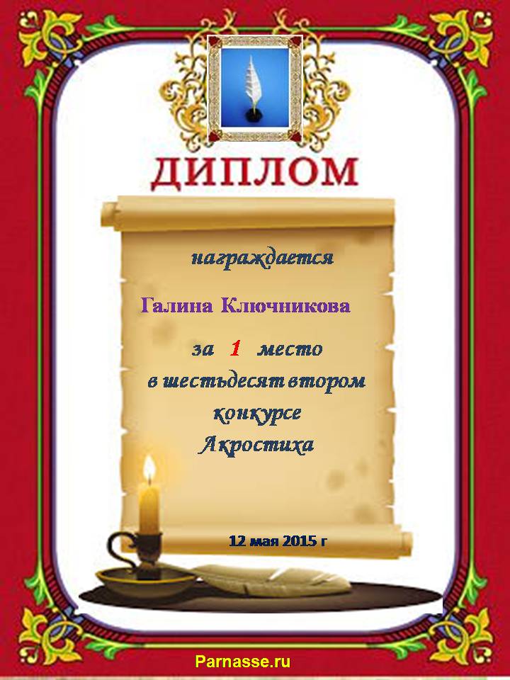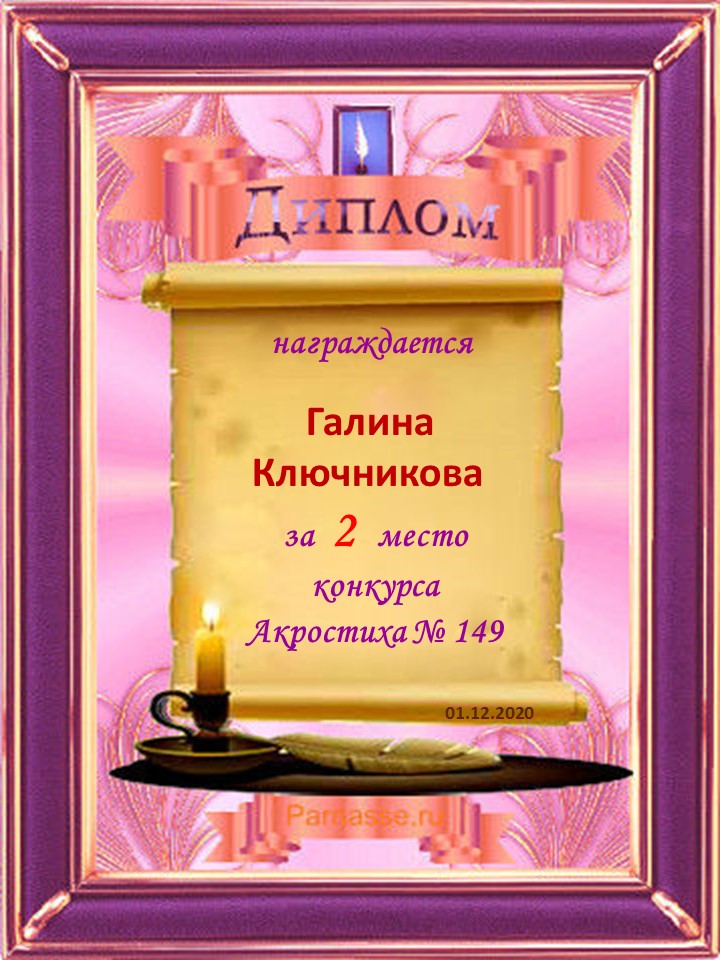 Диплом за 2 место во 2 годовом конкурсе Акростиха по итогам судейского голосования! ПОЗДРАВЛЯЮ!