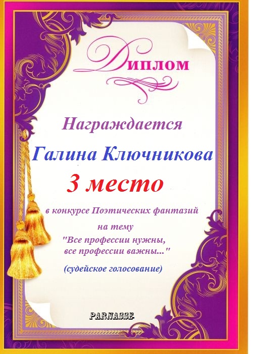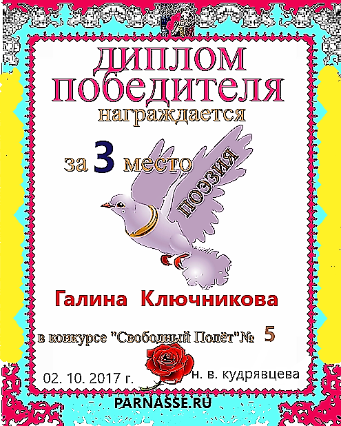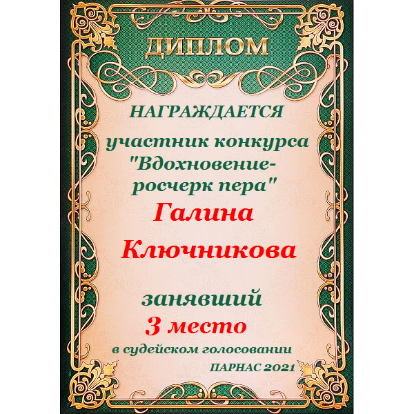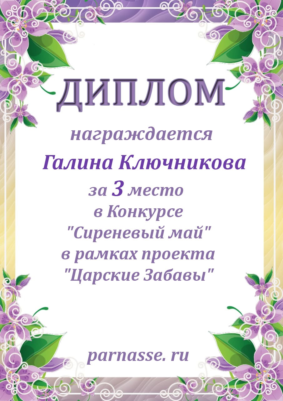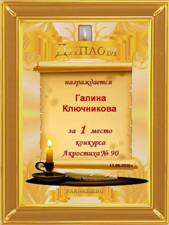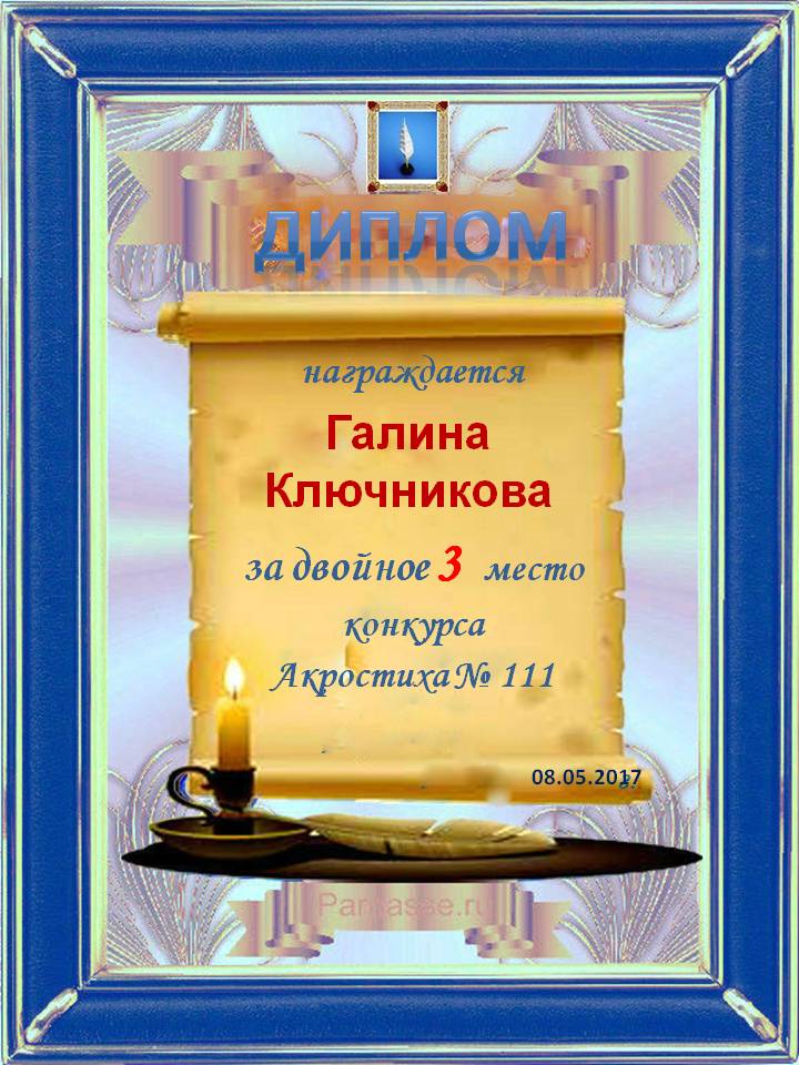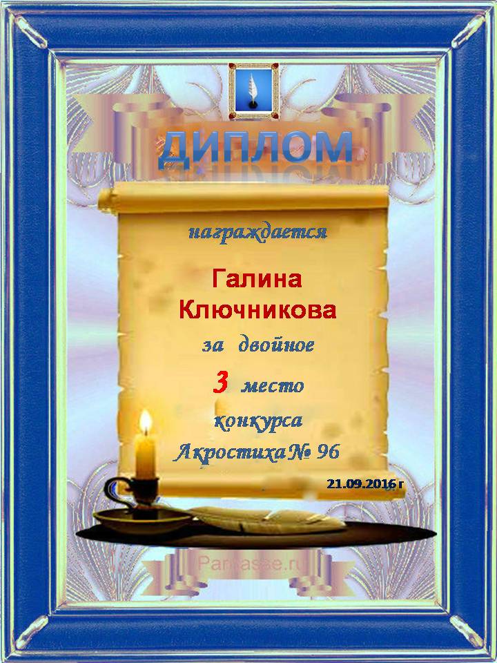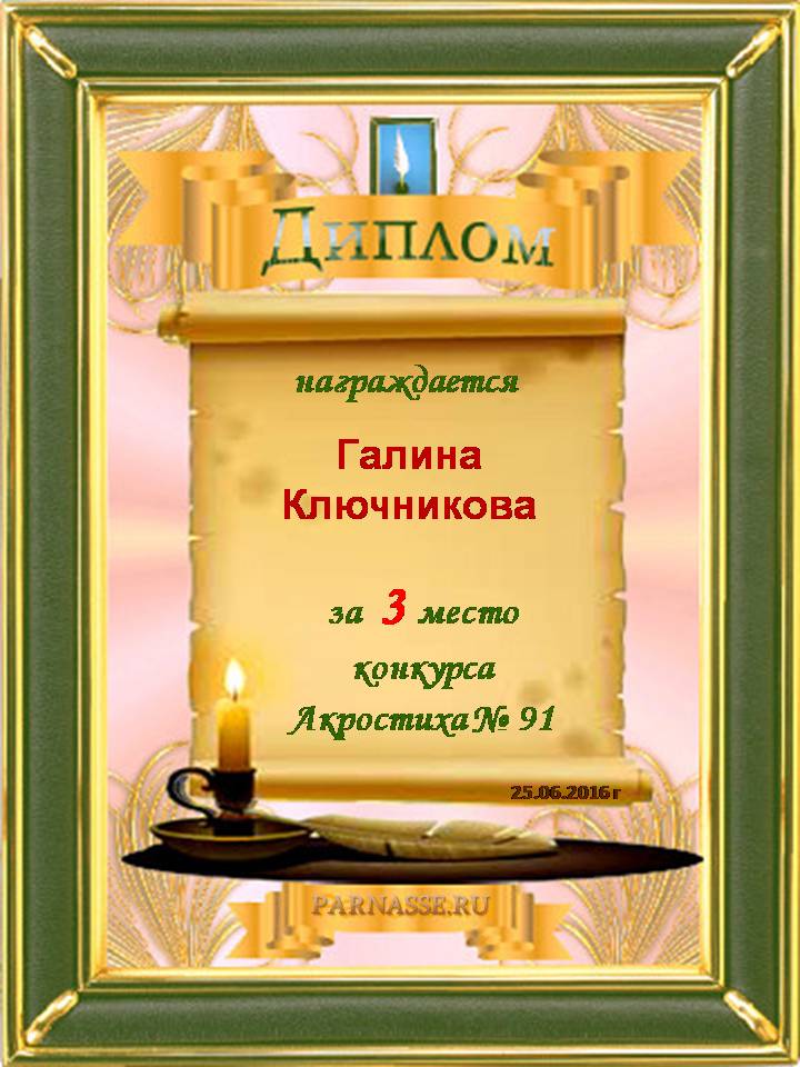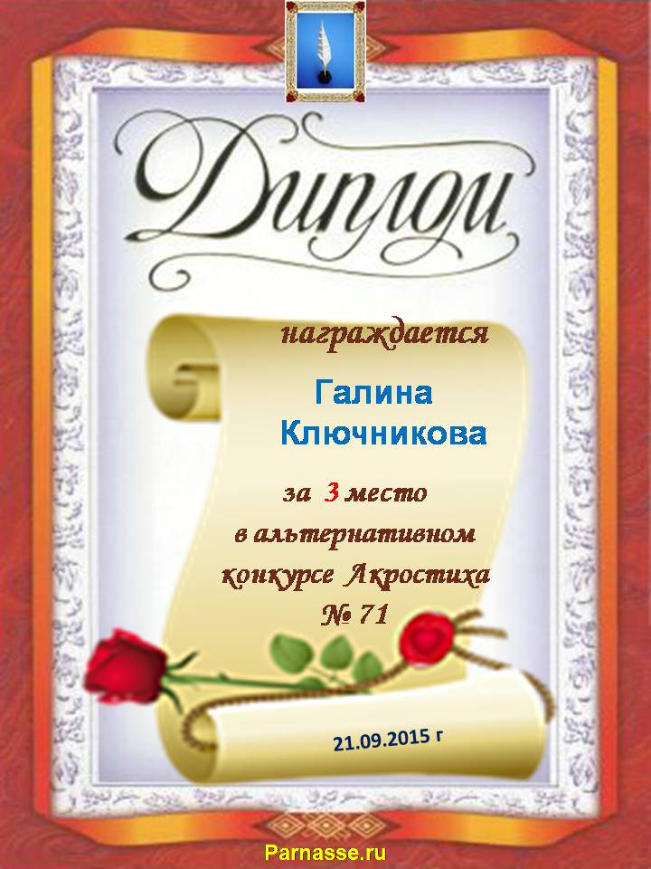 Диплом за двойное 3 место в 96 конкурсе АКРОСТИХА (Альтернатива)! ПОЗДРАВЛЯЮ!