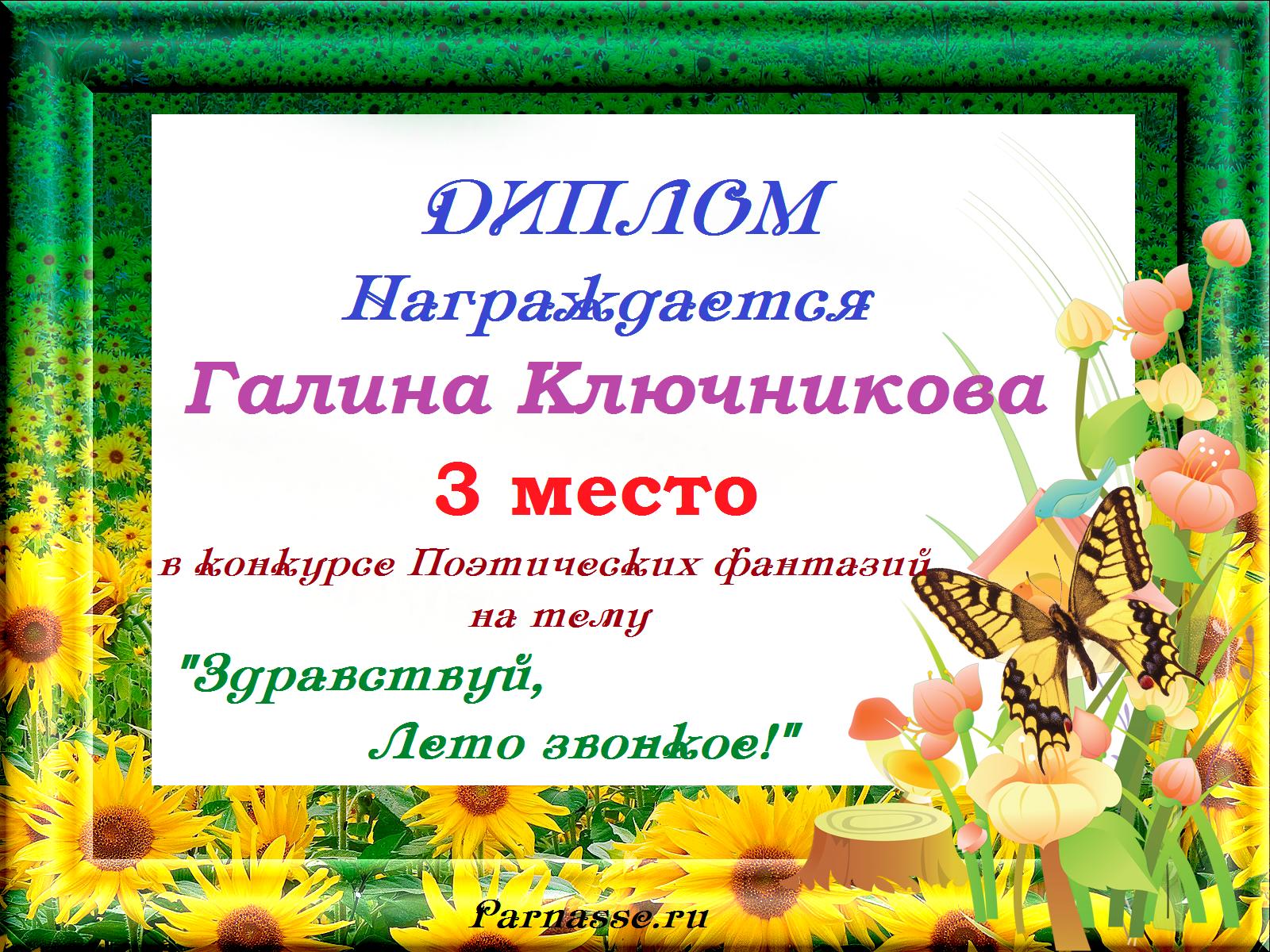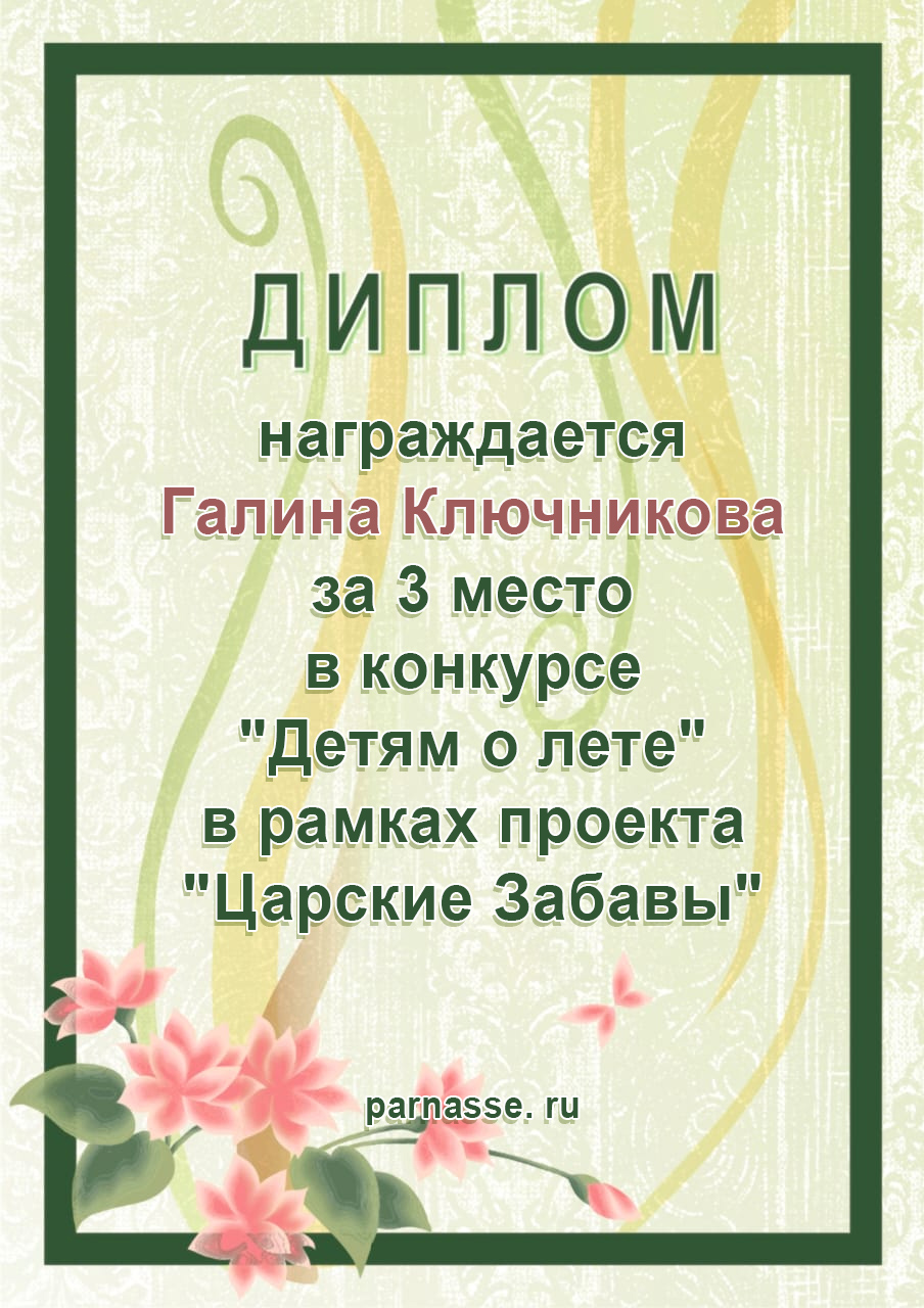 Победителю конкурса:"Здравствуй,лето звонкое!"