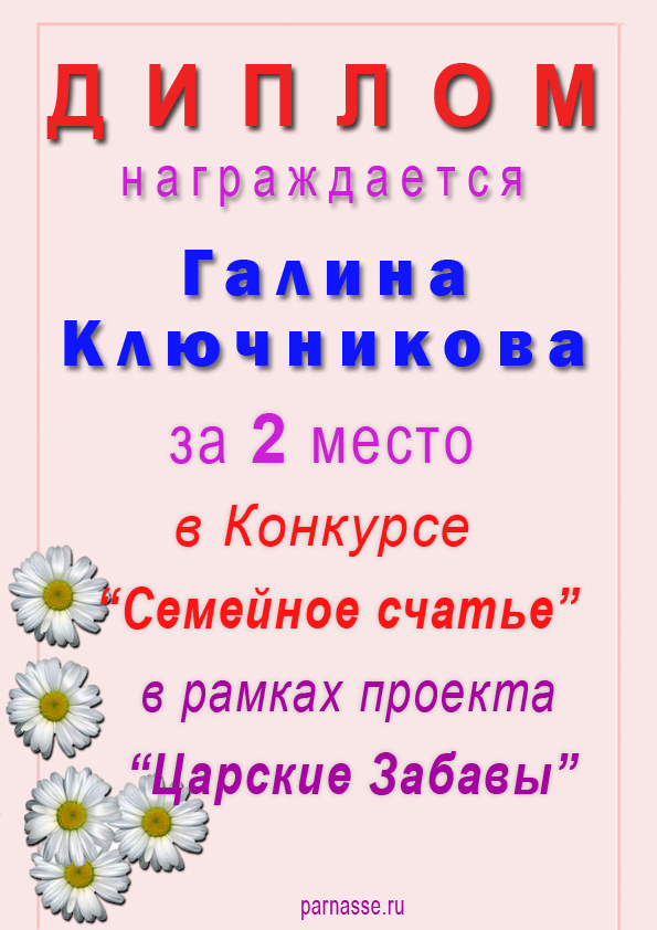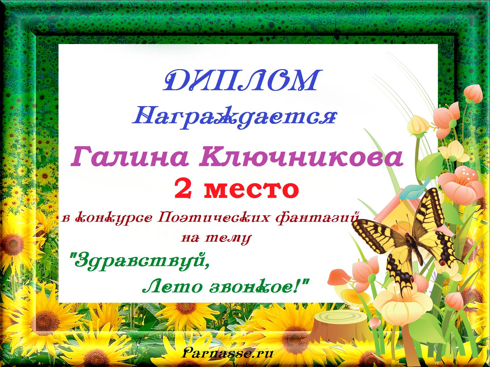 ГАЛИНА, ПОЗДРАВЛЯЮ С ЗАСЛУЖЕННОЙ ПОБЕДОЙ! 2 МЕСТО! ТАК ДЕРЖАТЬ!