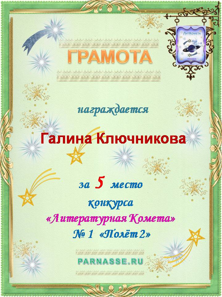 Грамота за 5 место в 96 конкурсе АКРОСТИХА (Альтернатива)! ПОЗДРАВЛЯЮ!