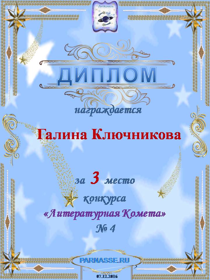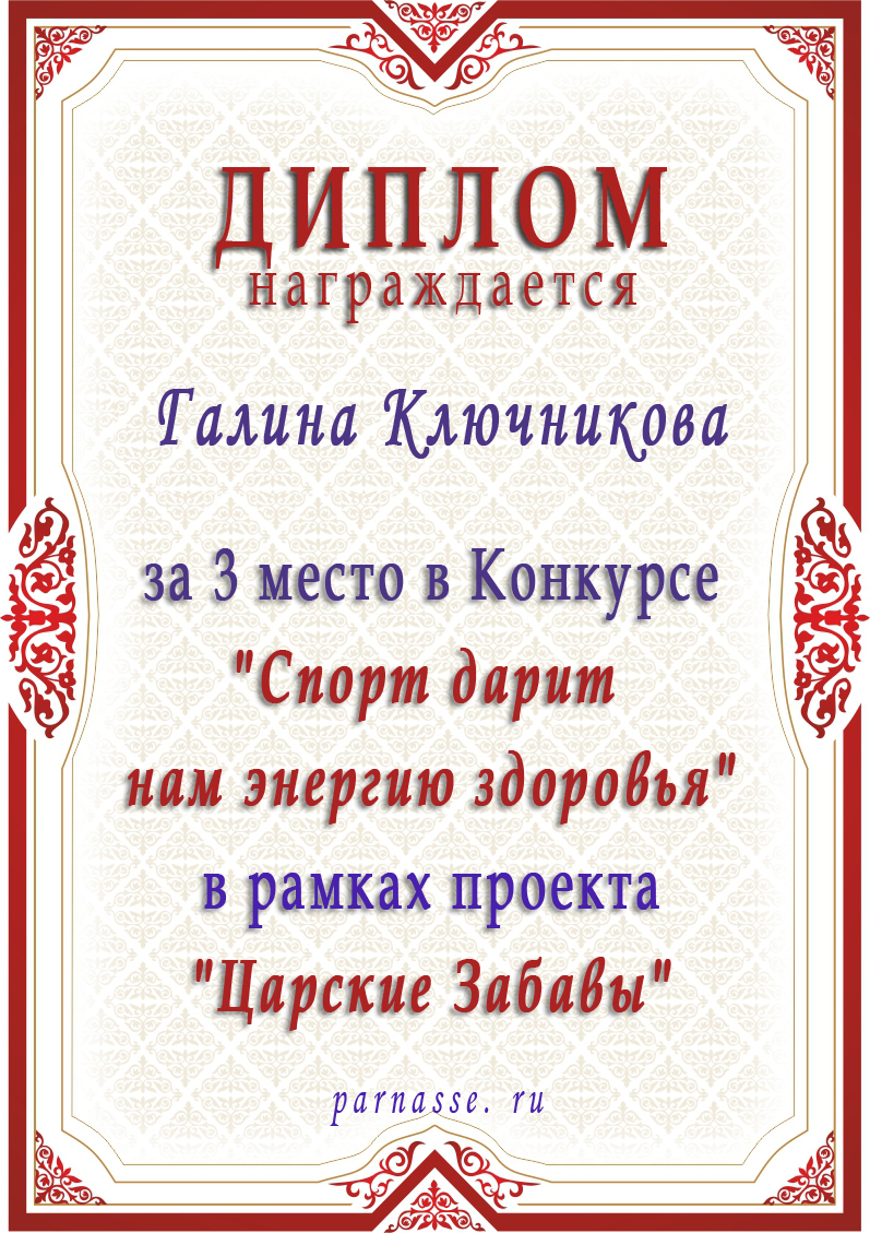 ГАЛИНА, ПОЗДРАВЛЯЮ С ЗАСЛУЖЕННОЙ ПОБЕДОЙ! 3 МЕСТО! ТАК ДЕРЖАТЬ!