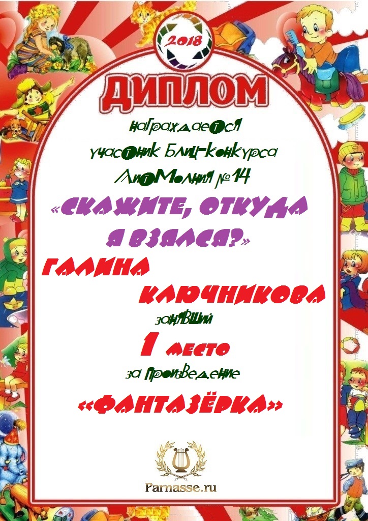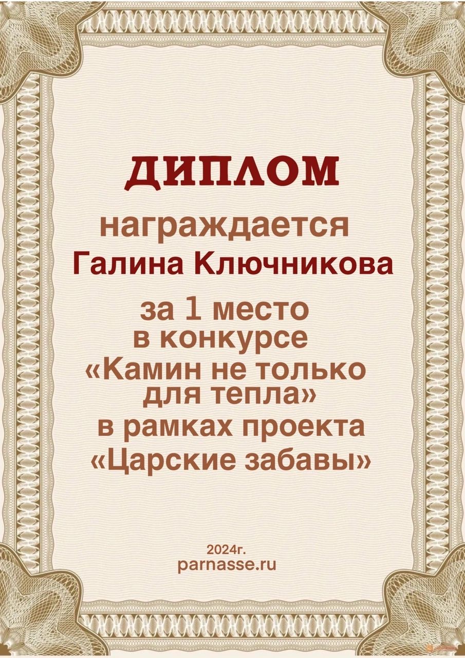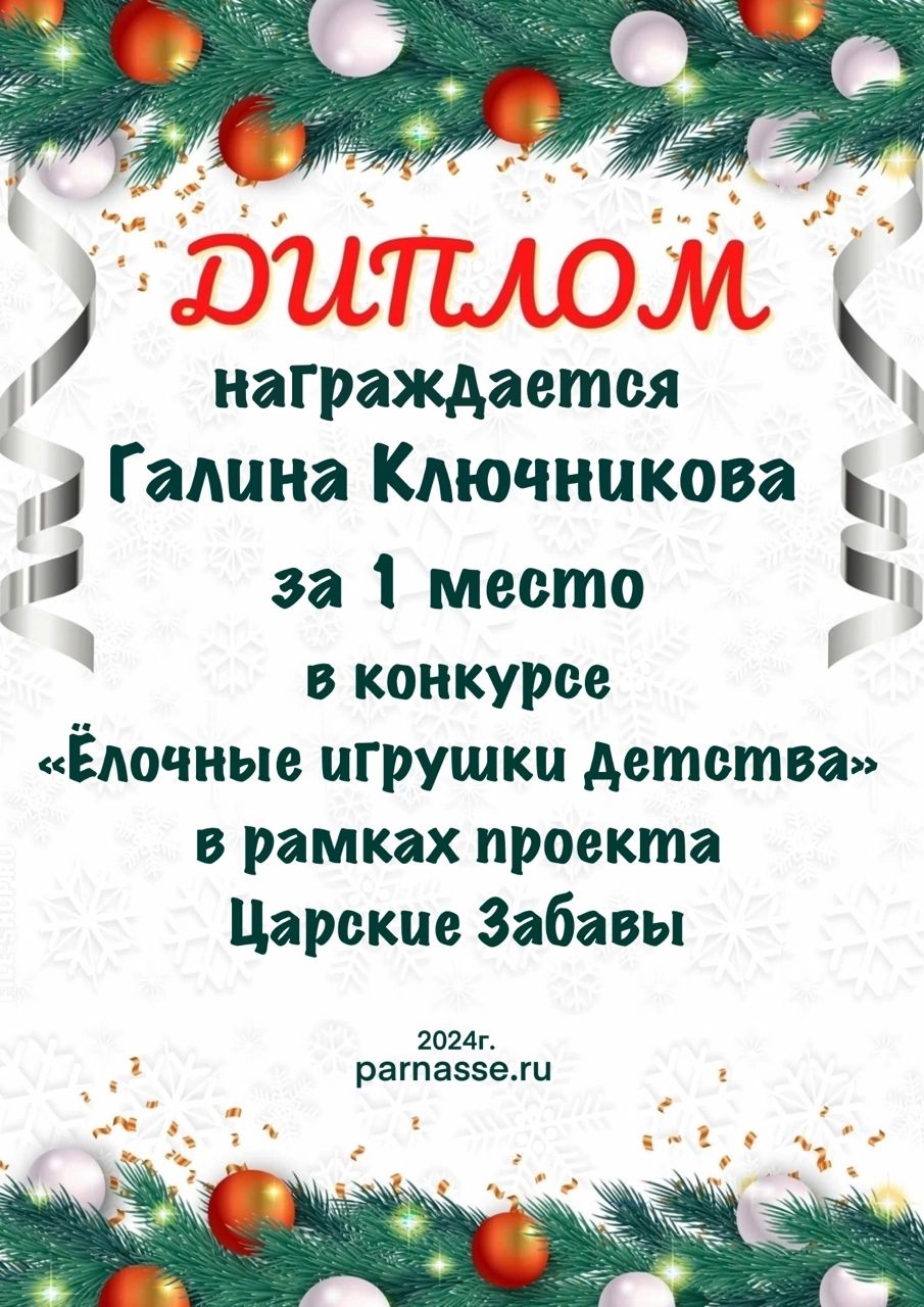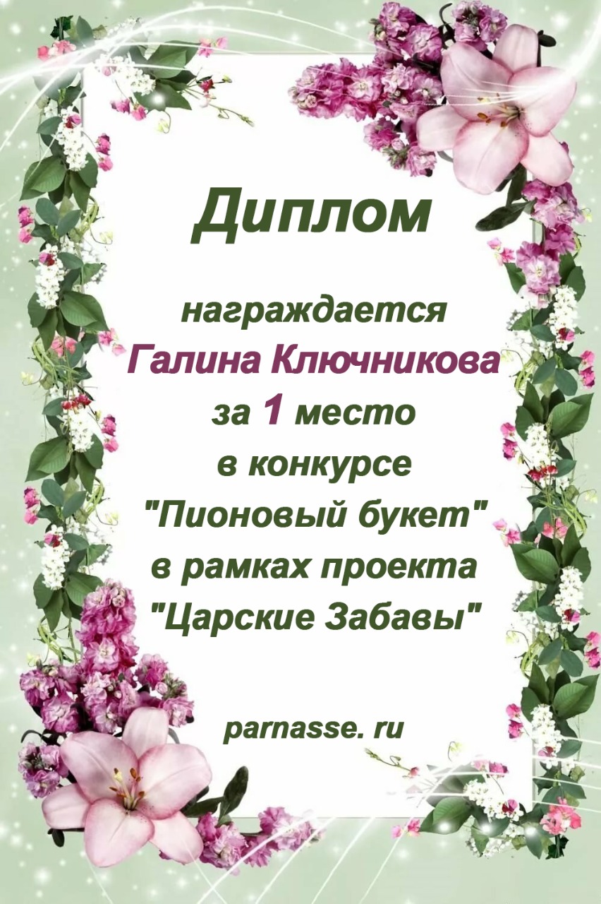 Диплом за 1 место в праздничном конкурсе "Поздравим Парнас с трёхлетием вместе!"