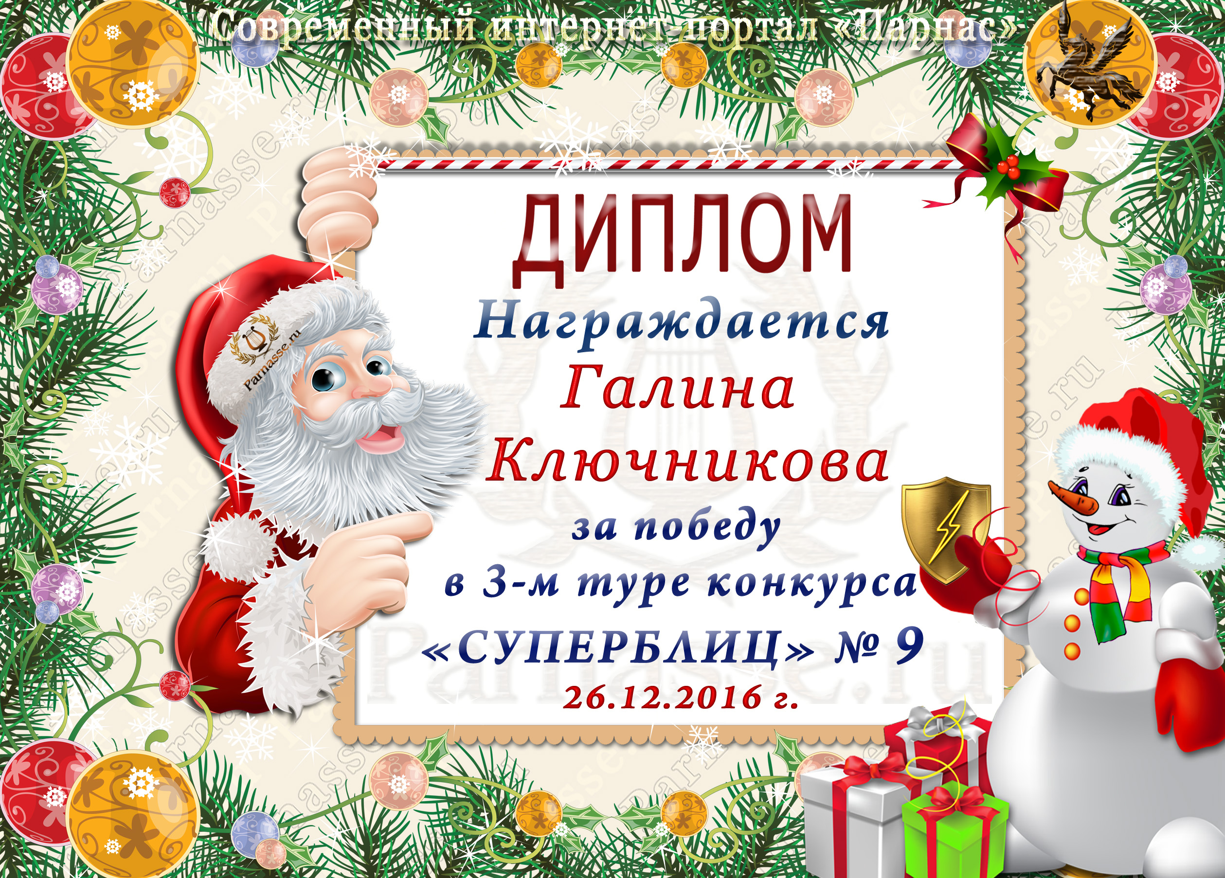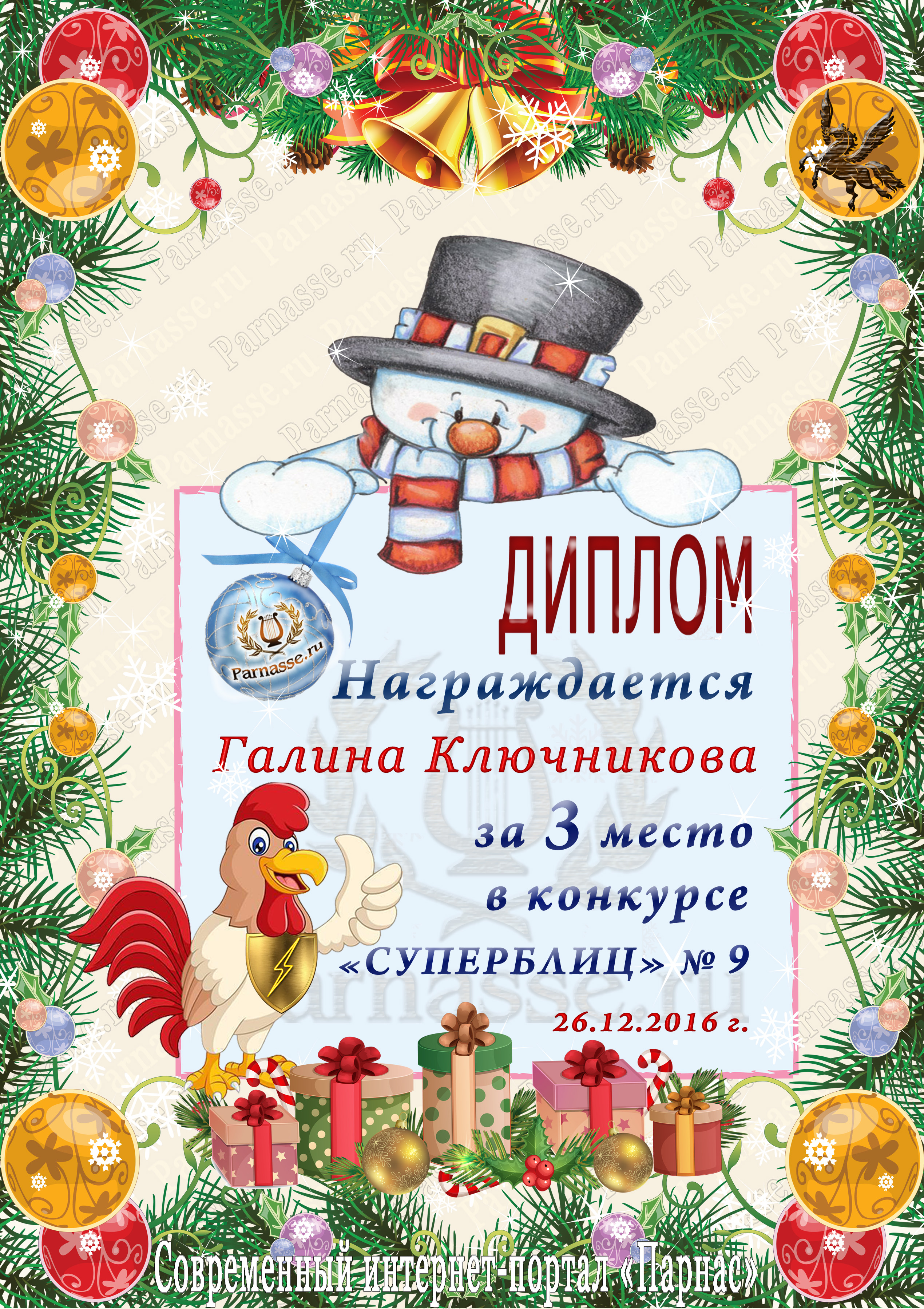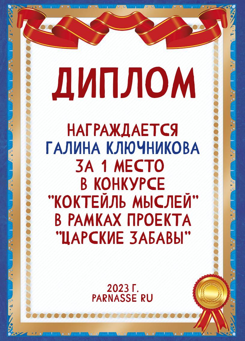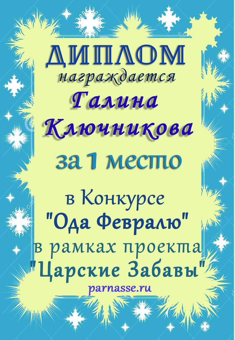 Диплом за 1 место в праздничном конкурсе "Поздравим Парнас с трёхлетием вместе!"