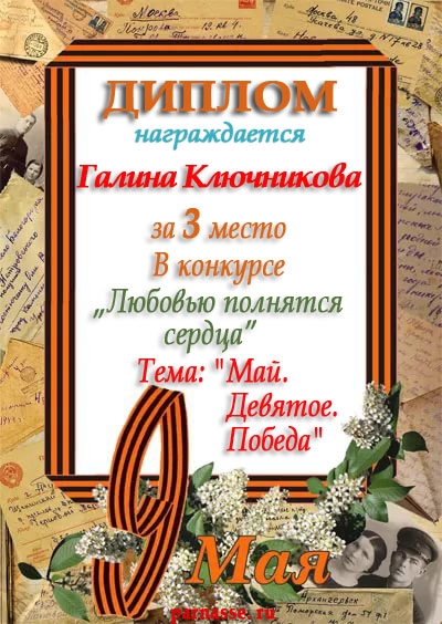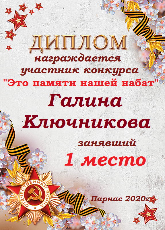Победителю конкурса,посвящённого71-й годовщине ВЕЛИКОЙ ПОБЕДЫ.