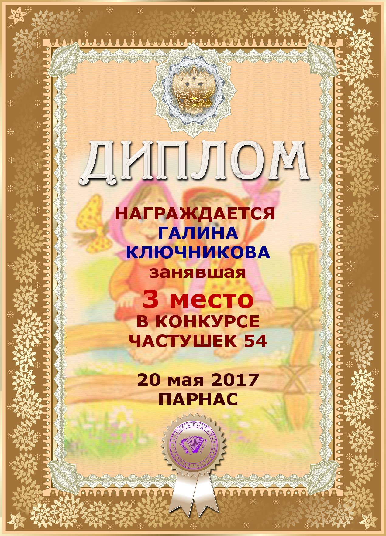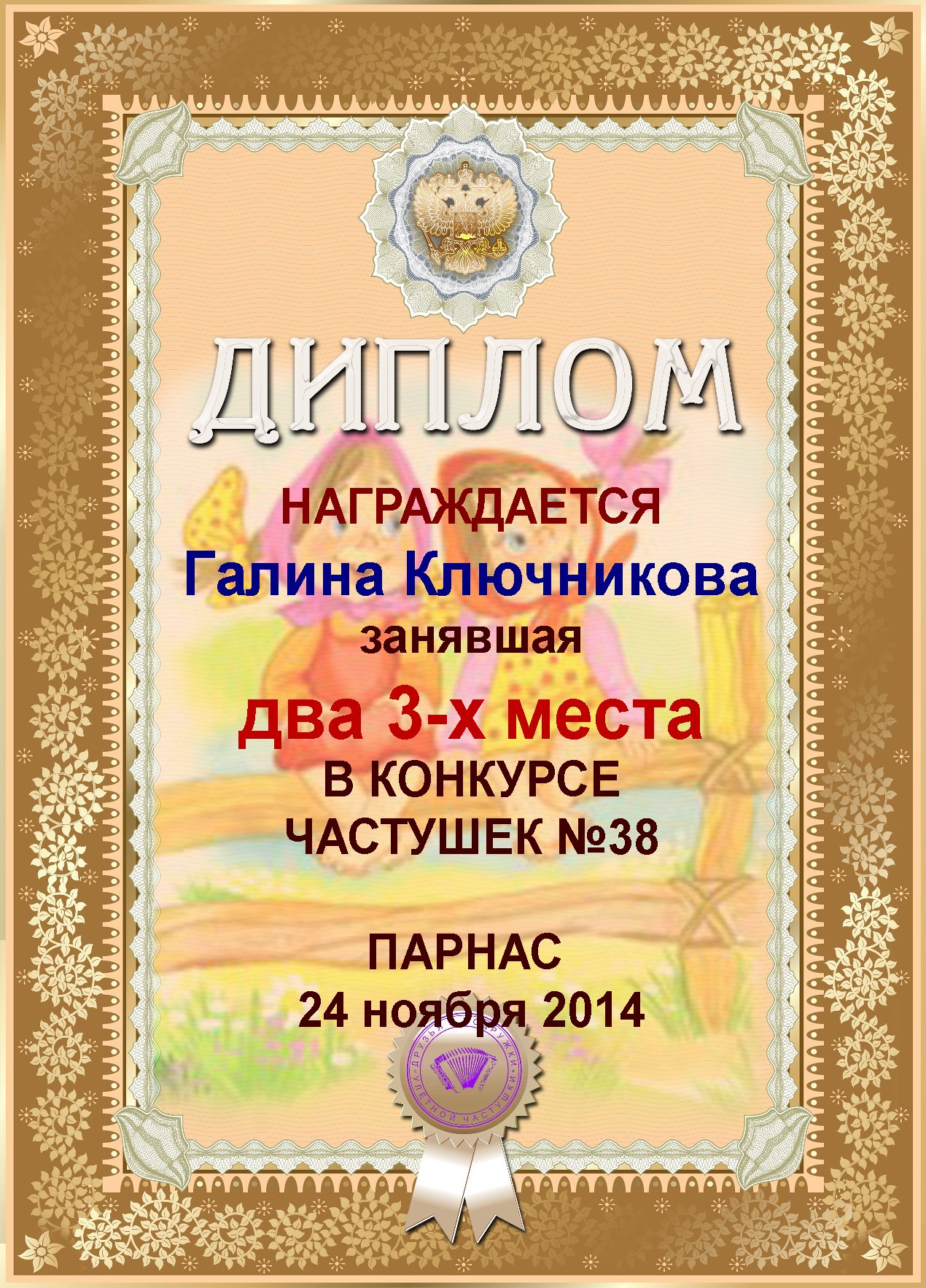 Диплом за 3 место в конкурсе частушки № 6++