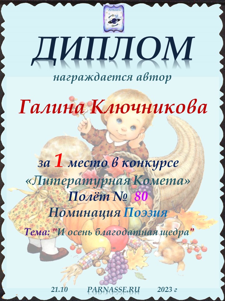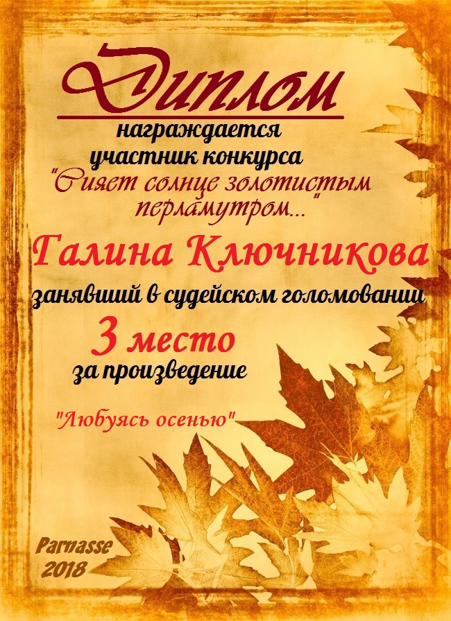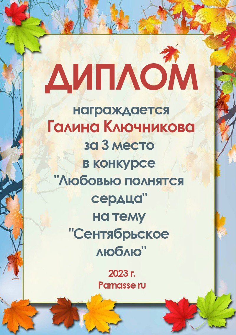2 место в конкурсе "Бабье лето - подарок осени". Поздравляем!