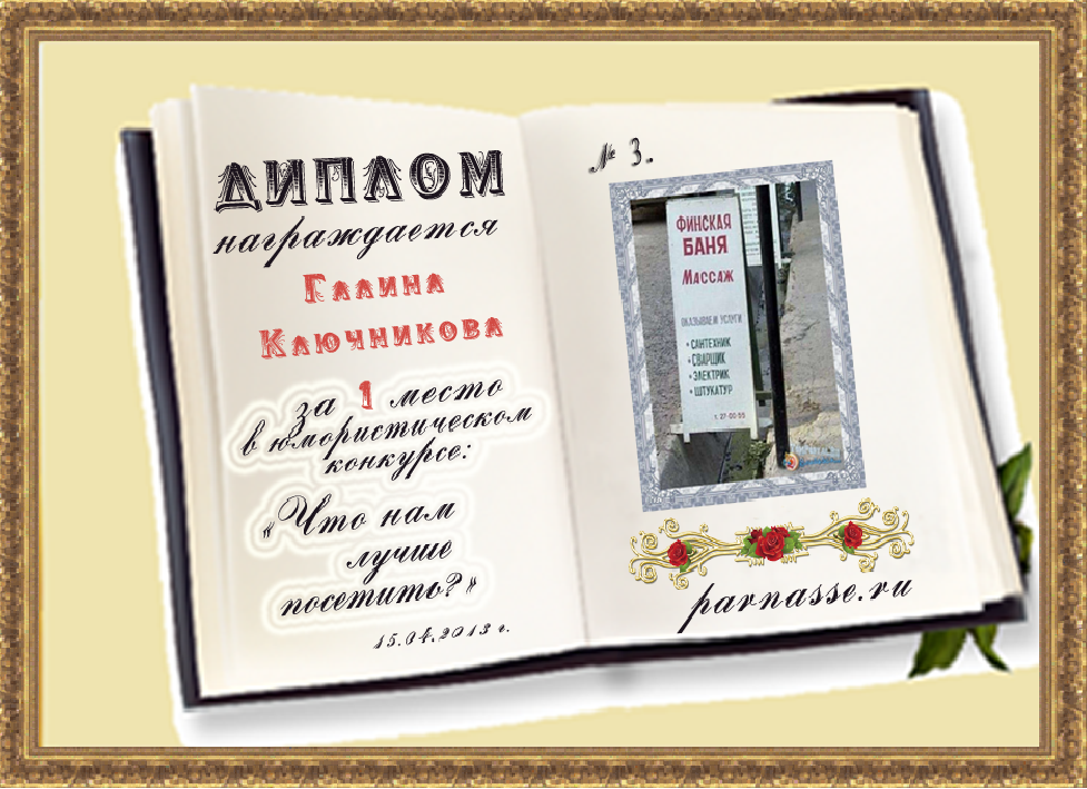 Диплом за победу и 2 место в дополнительной номинации конкурса лимериков № 41+ (9.09.2013г.)