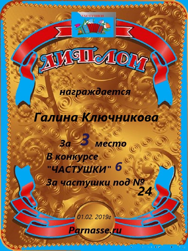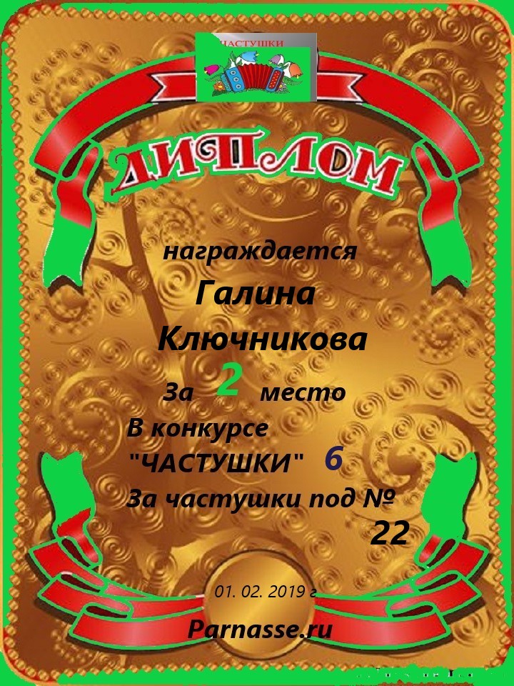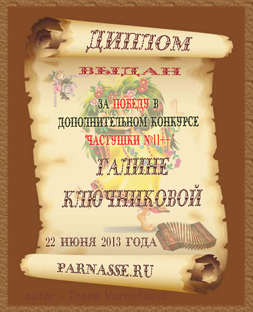ГАЛИНА, ПОЗДРАВЛЯЮ С ПОБЕДОЙ В КОНКУРСЕ ЧАСТУШЕК №10н