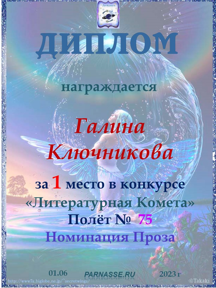 ![]() Медаль за 1 место в конкурсе "ЛитКомета - Полёт № 96"