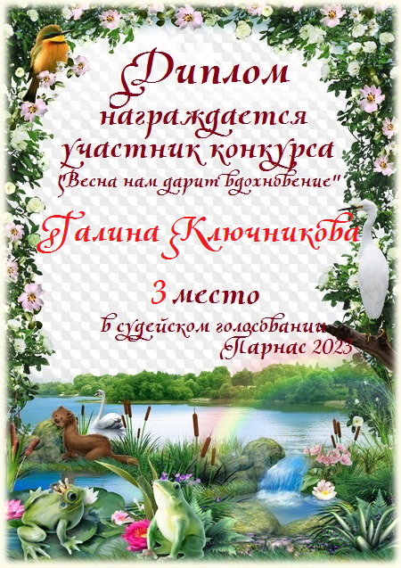 Третье место в судейском голосовании по итогам конкурса: «Пусть все птицы о счастье поют»