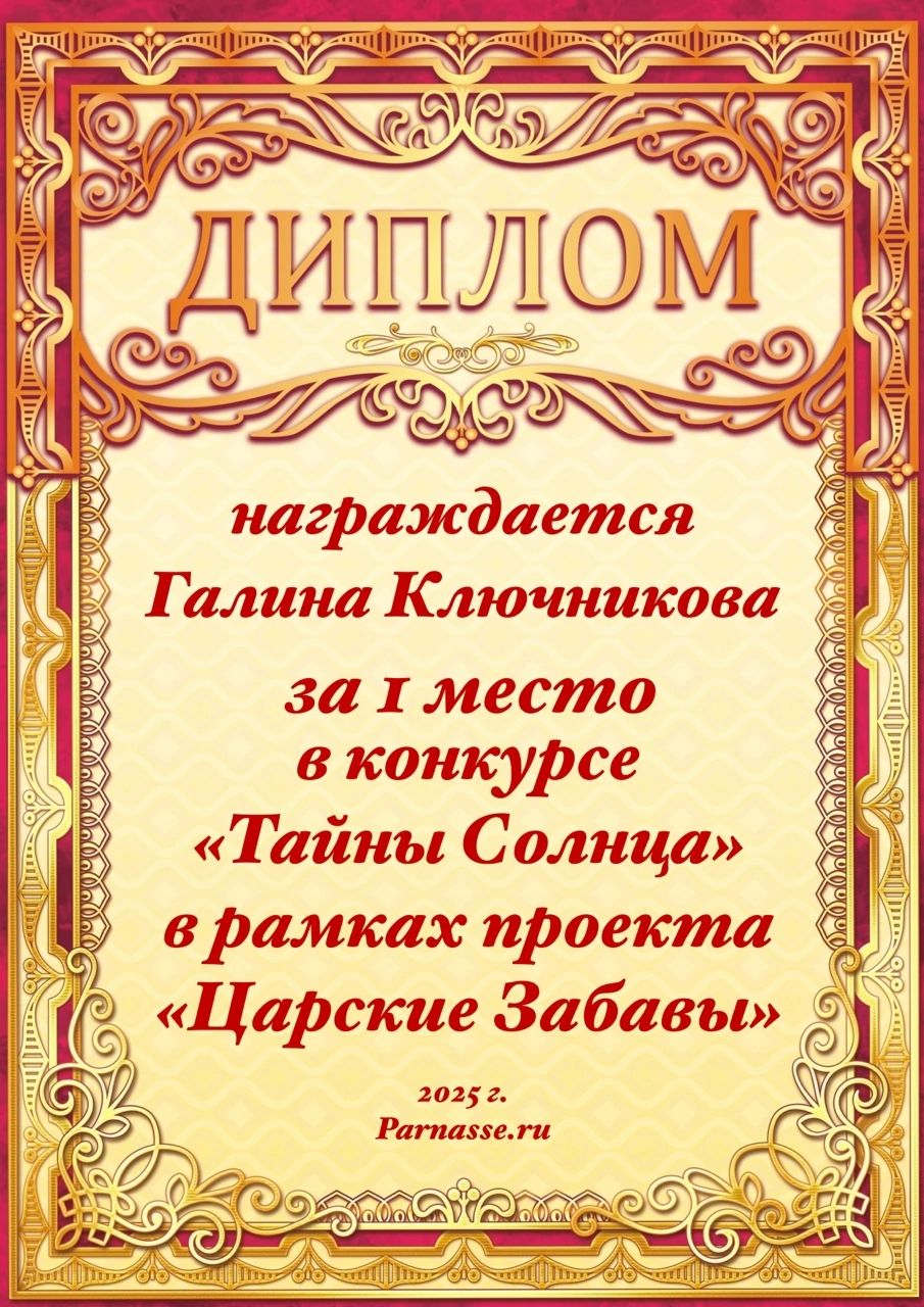 1 место в конкурсе "Тайны Солнца". Поздравляем!