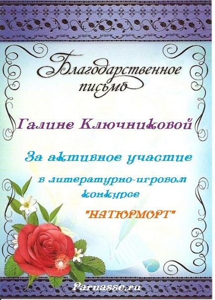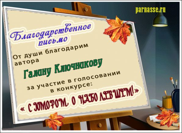 ГАЛИНА, БЛАГОДАРЮ ЗА УЧАСТИЕ В СЛОЖНОЙ НОМИНАЦИИ КОНКУРСА №10Н