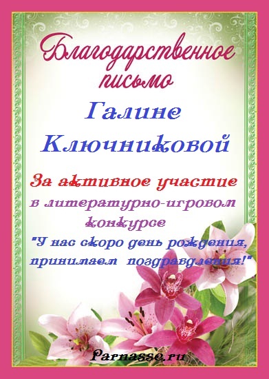 Номинация "Лучшее стихотворное поздравление Парнасу". Уважаемая Галина!
