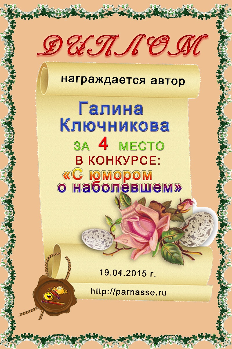 1 место в конкурсе "Шипы и розы". Поздравляем!