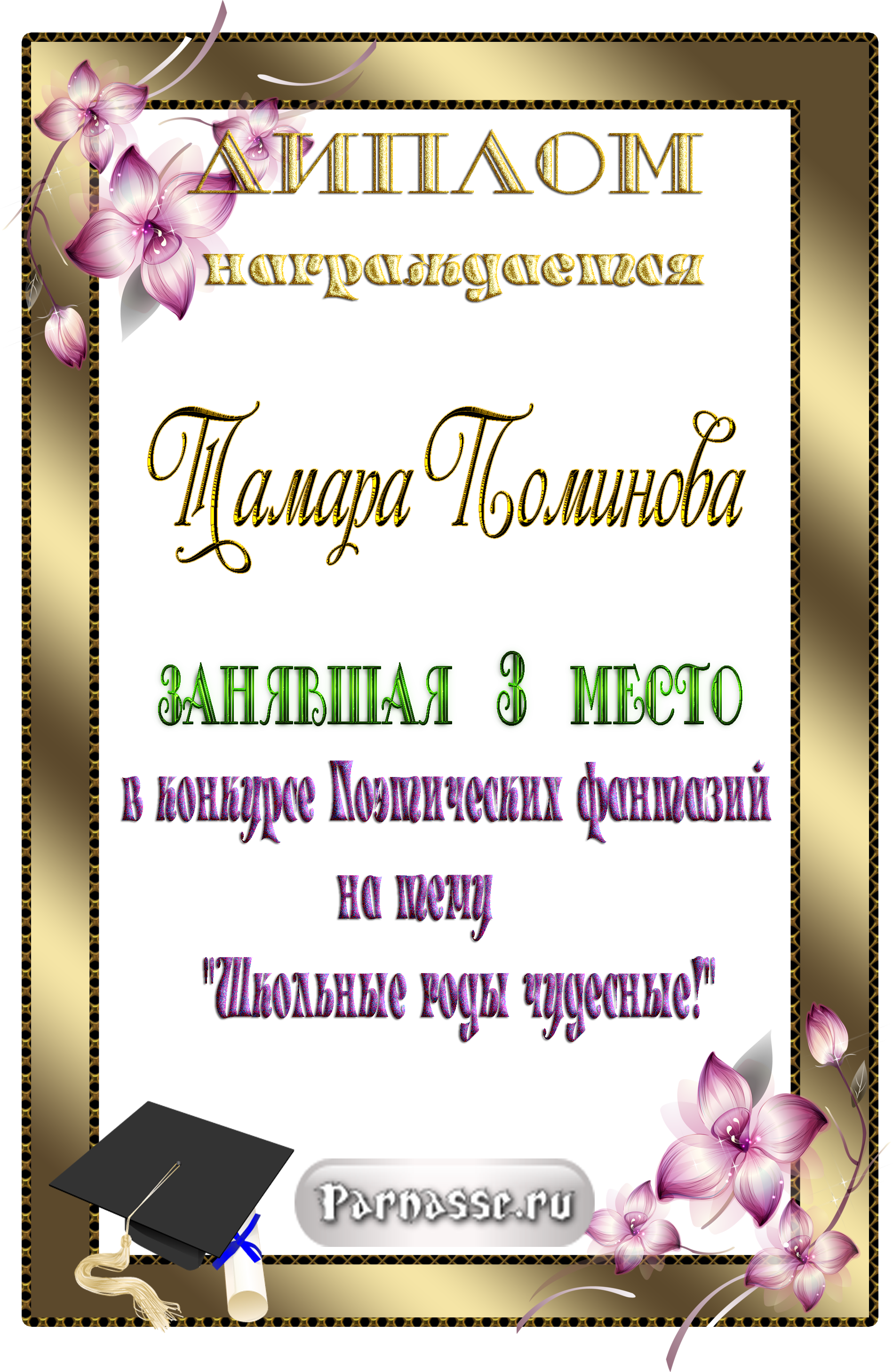 ![]() Медаль за 3 место в конкурсе Поэтических фантазий