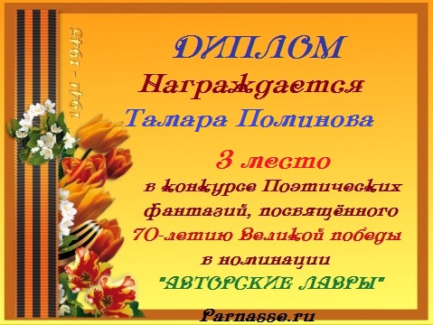 ![]() ![]() Медаль за 3 место в конкурсе Поэтических фантазий