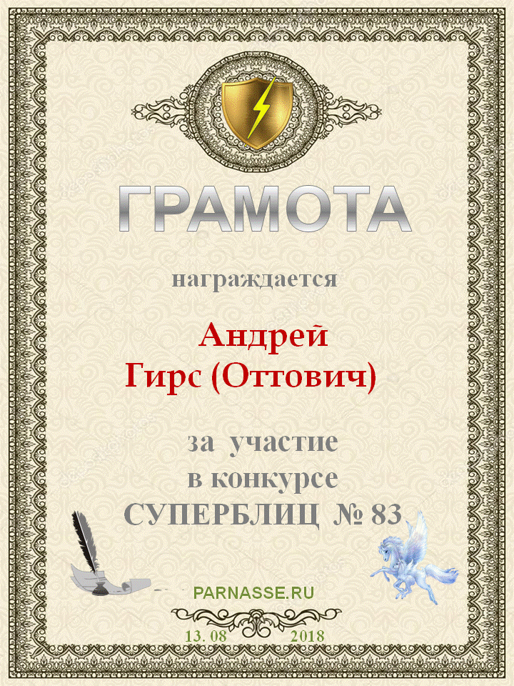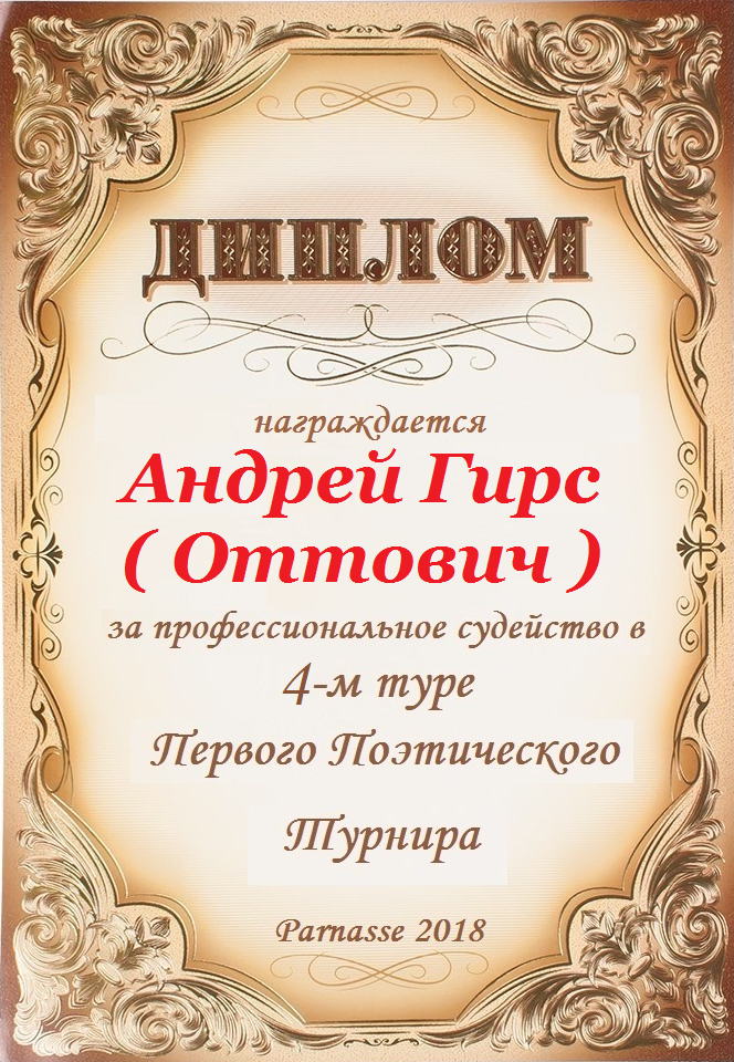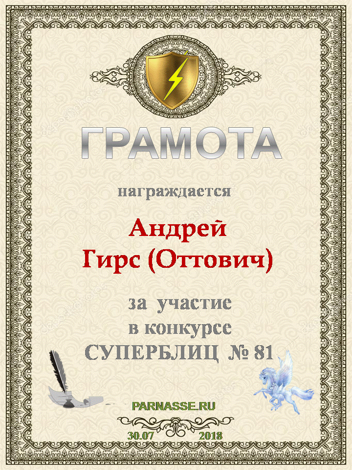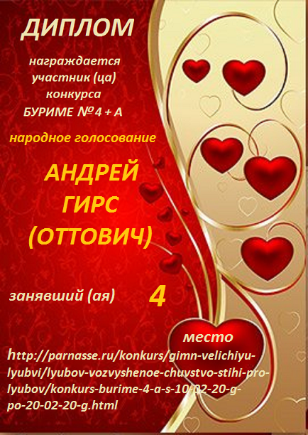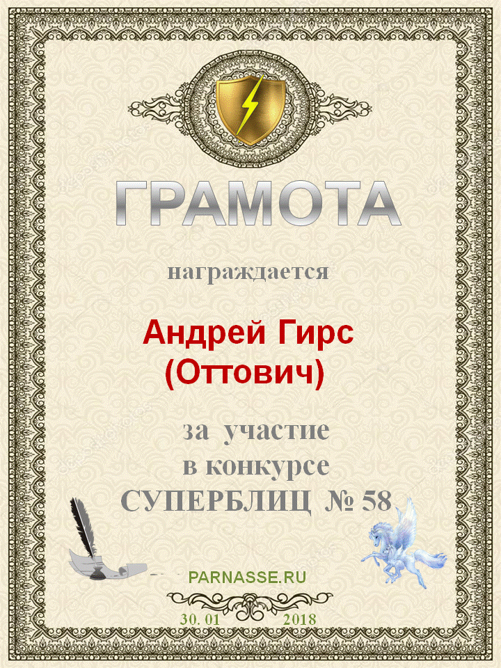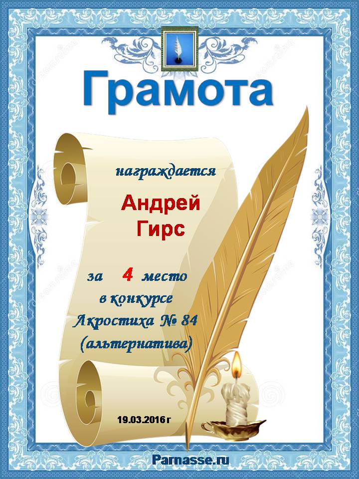 Грамота за 4 место в 84 конкурсе АКРОСТИХА (Альтернатива)!