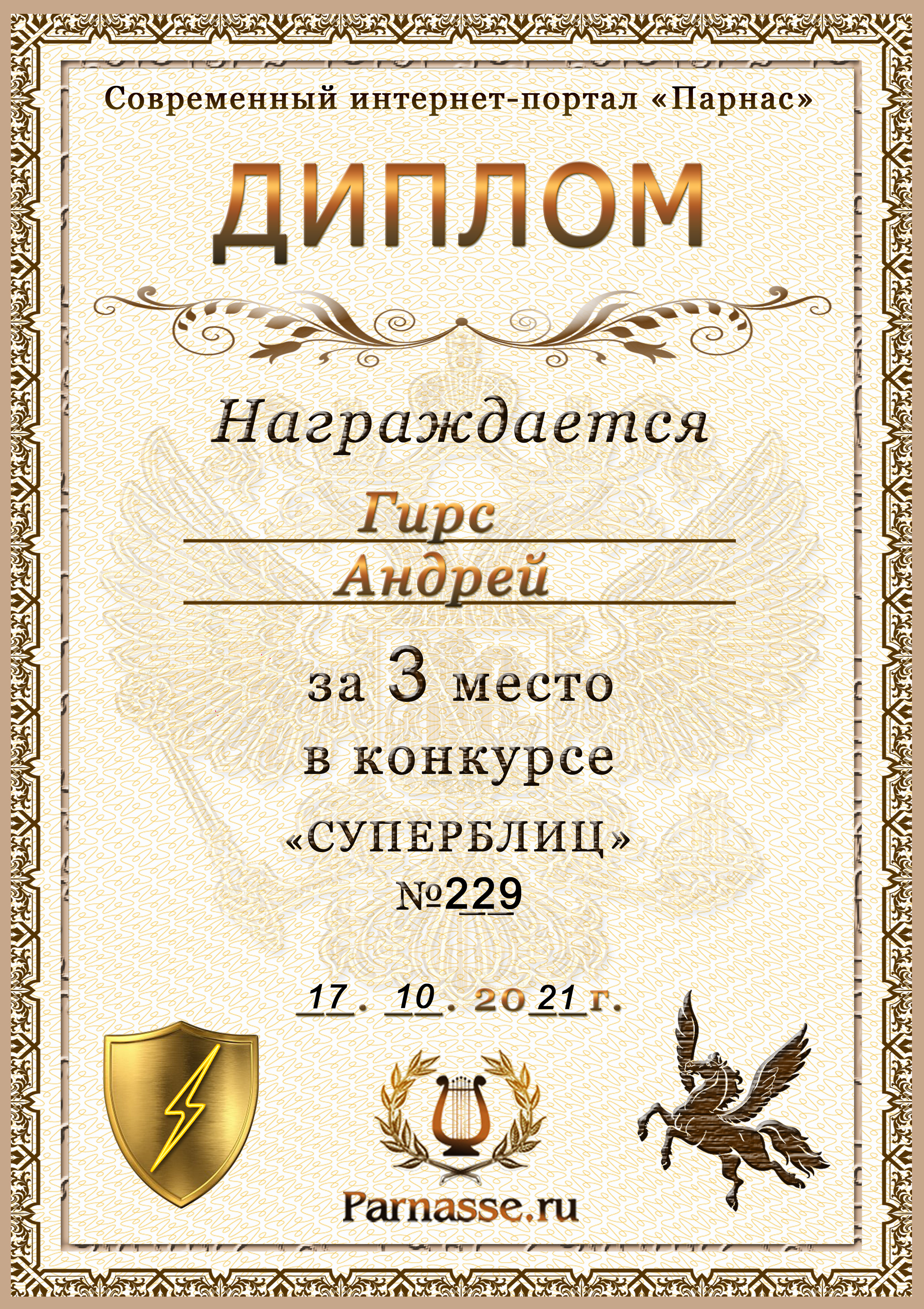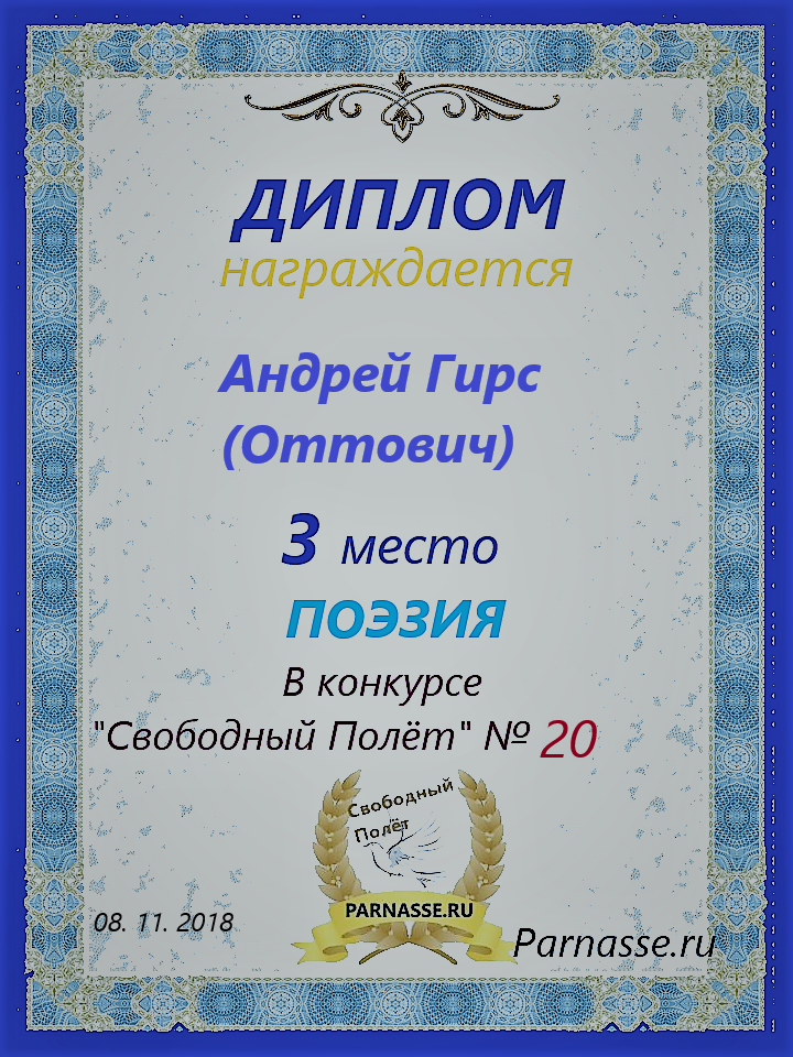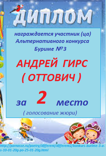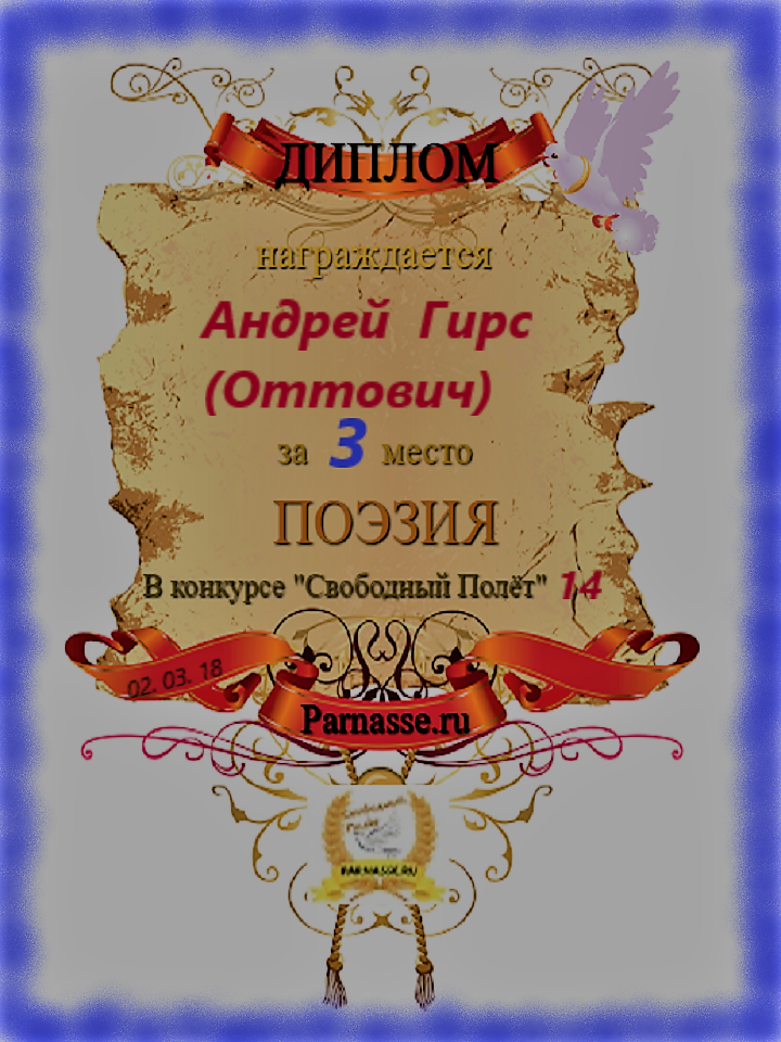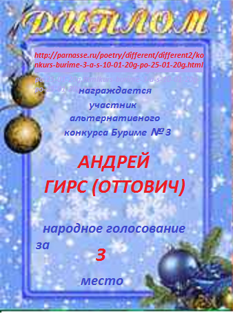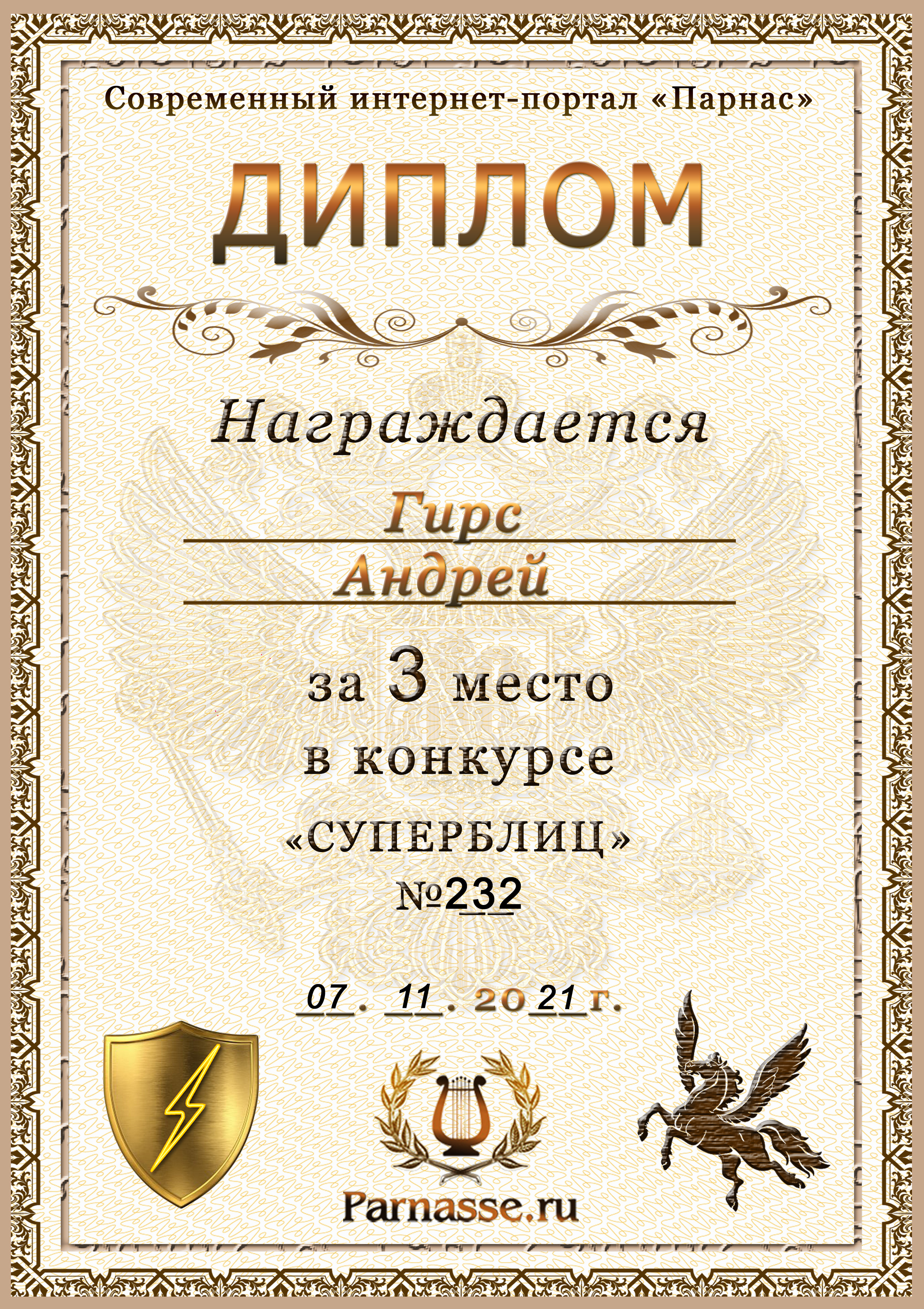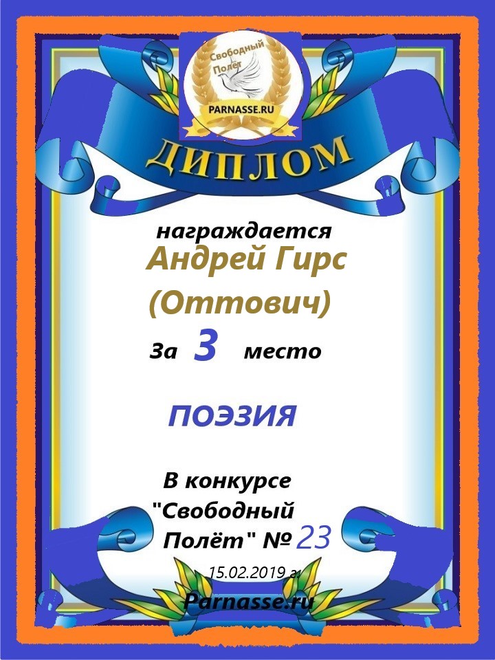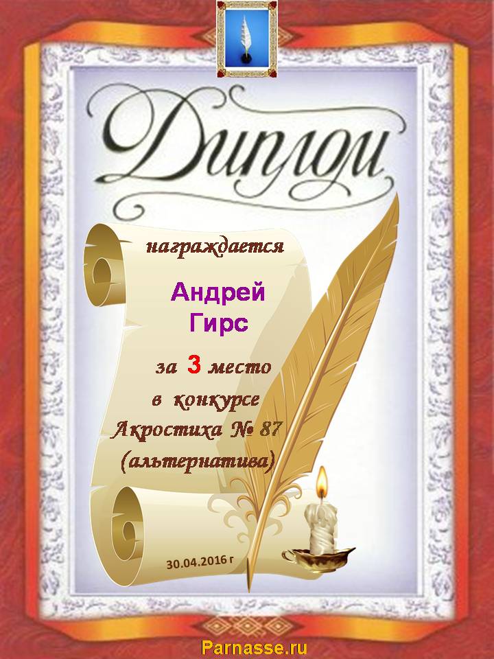 Диплом за 3 место в 87 конкурсе АКРОСТИХА (Альтернатива)!