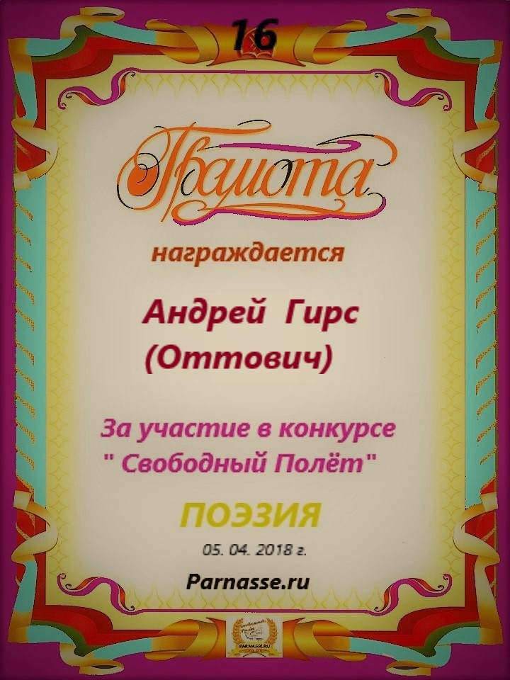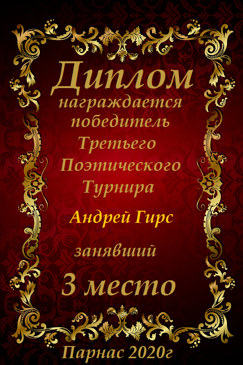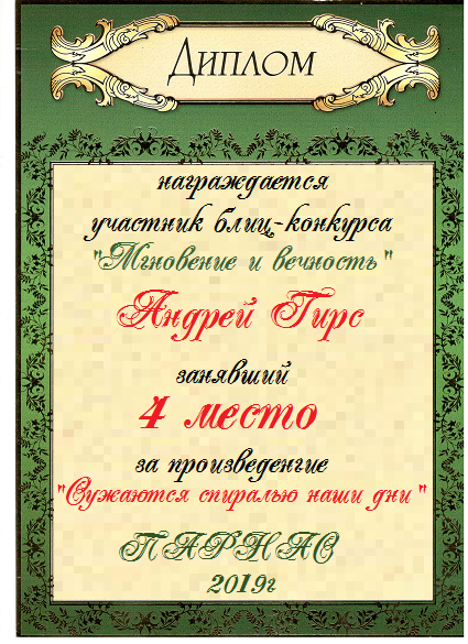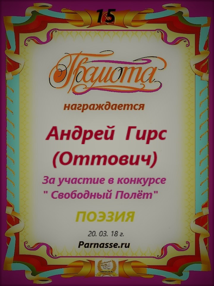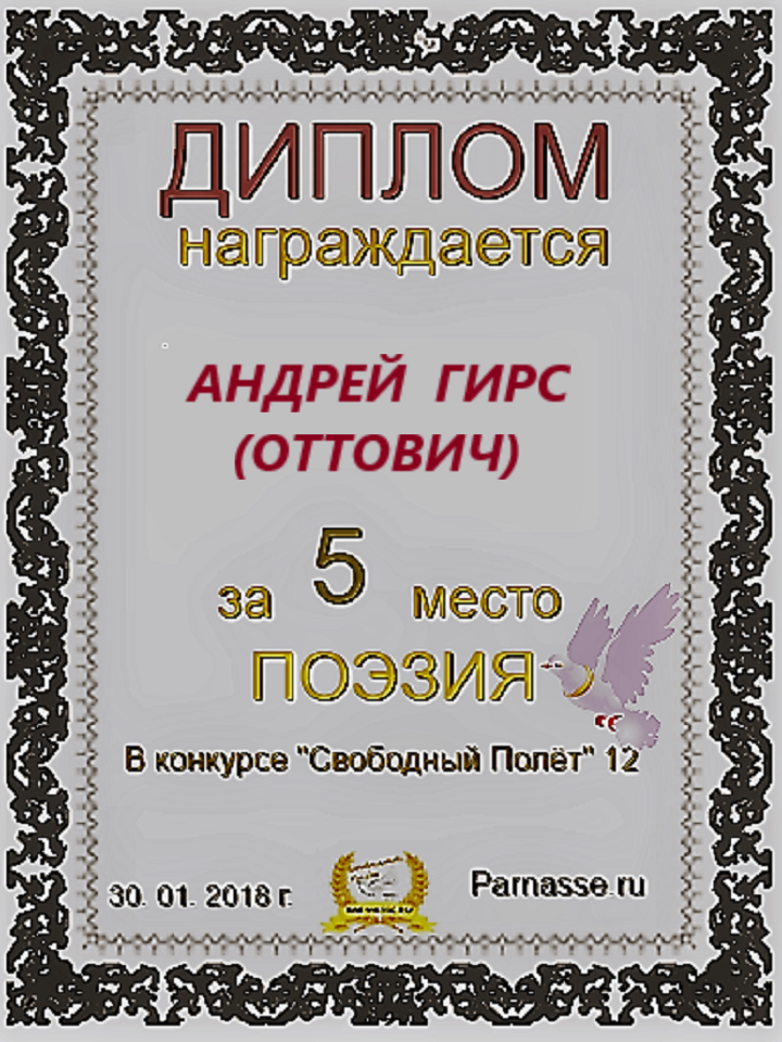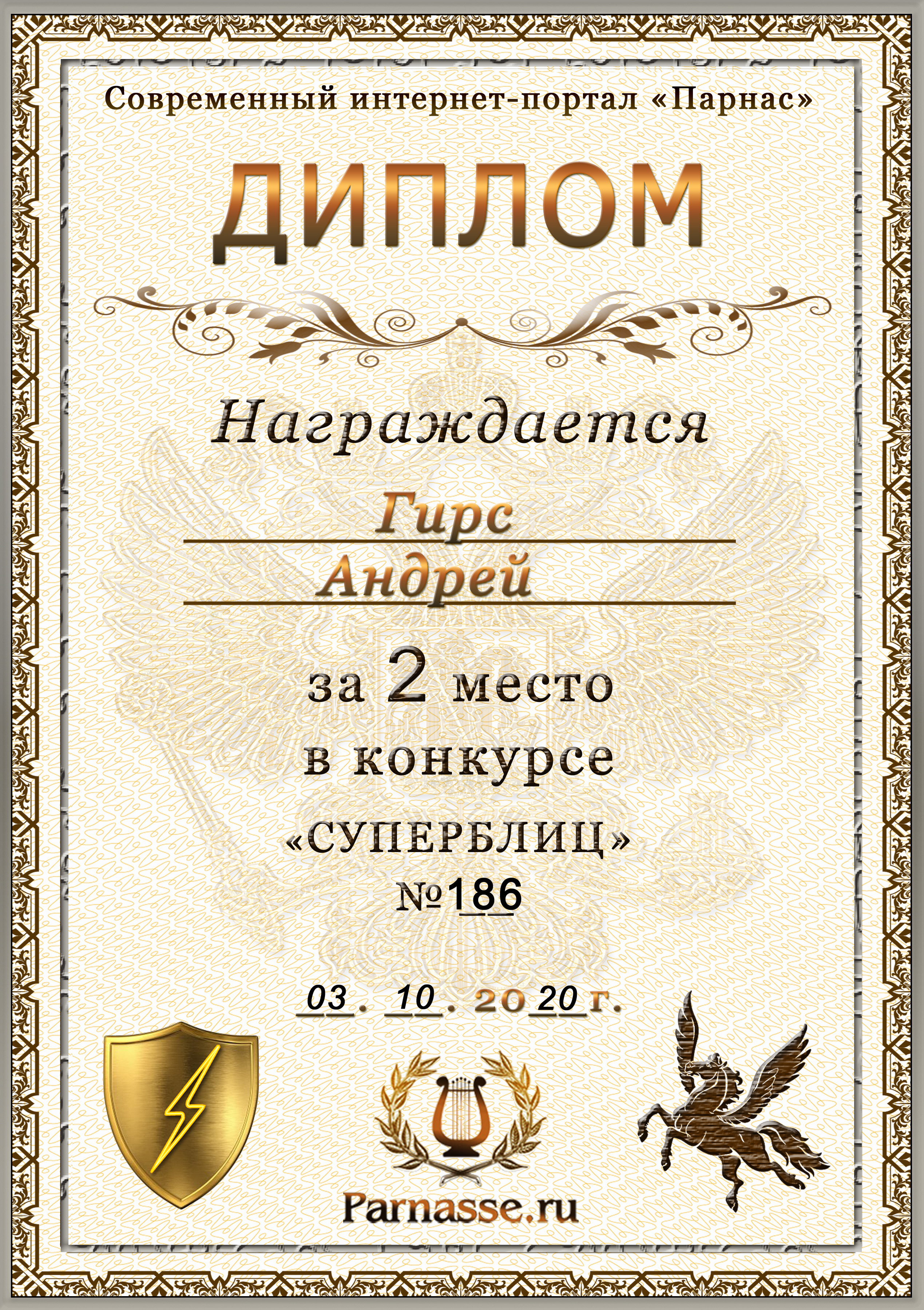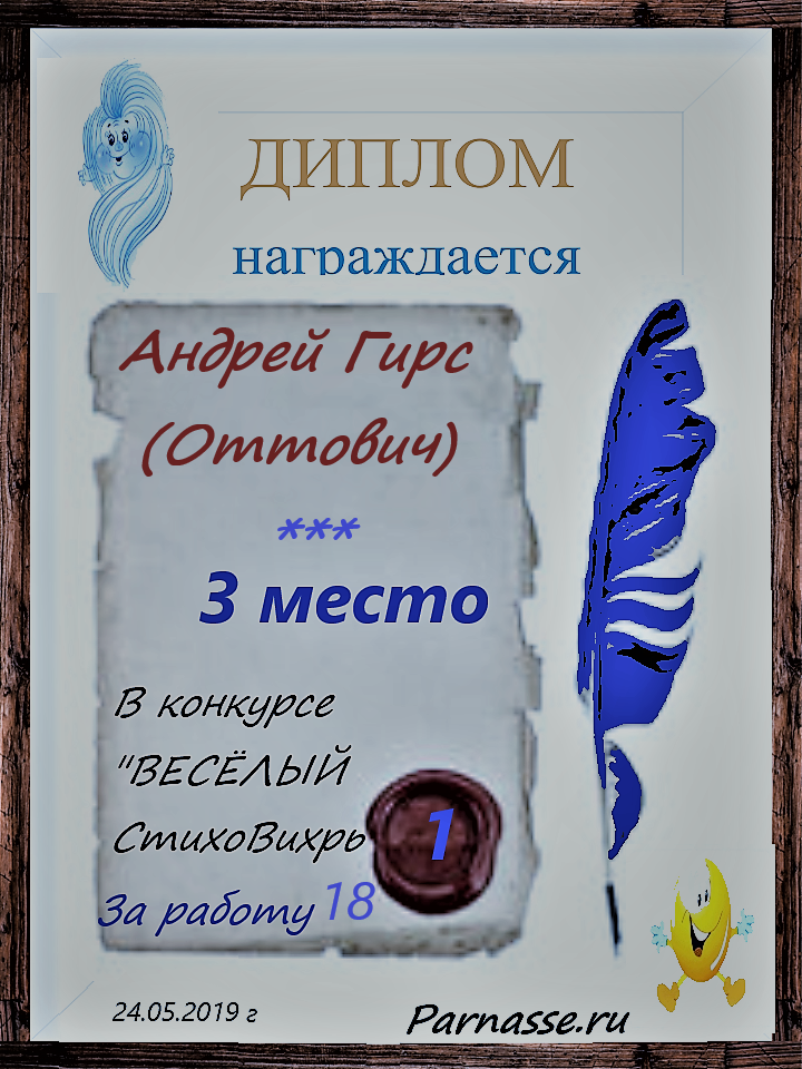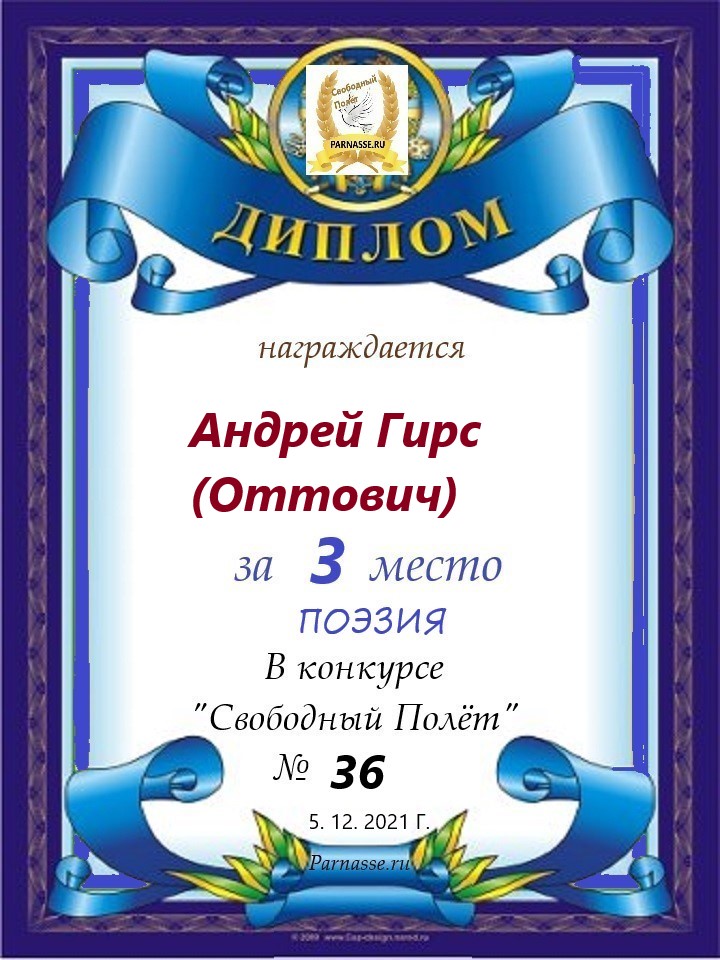 Диплом за 3 место в 87 конкурсе АКРОСТИХА (Альтернатива)!