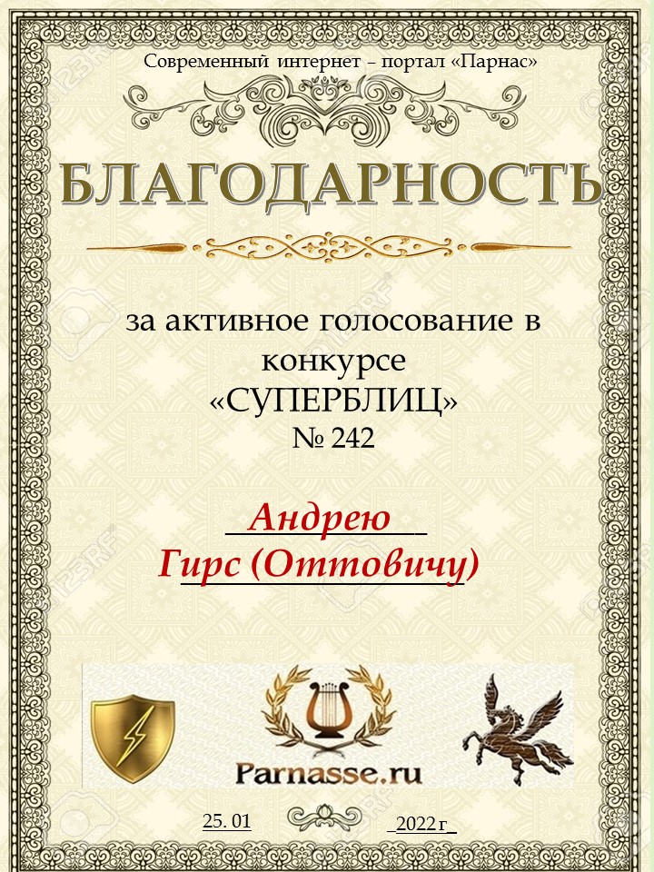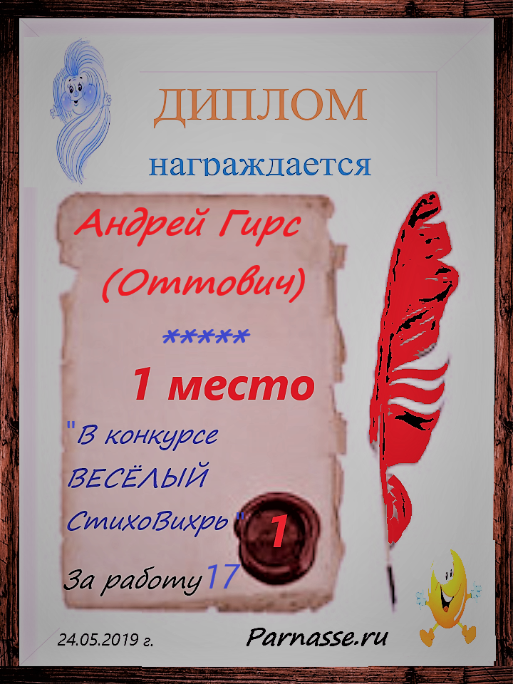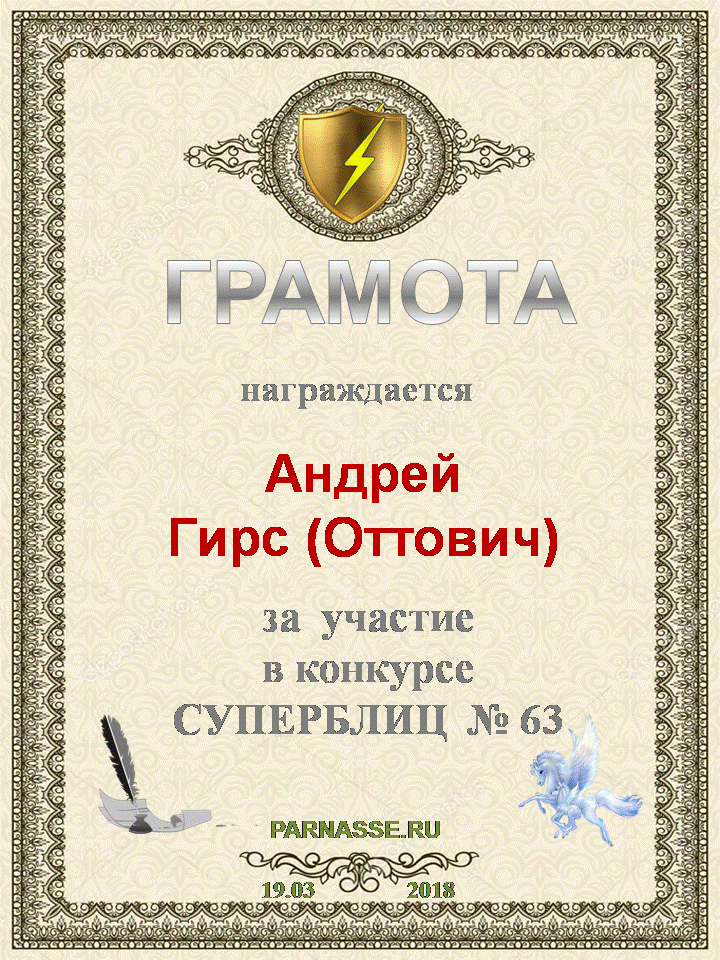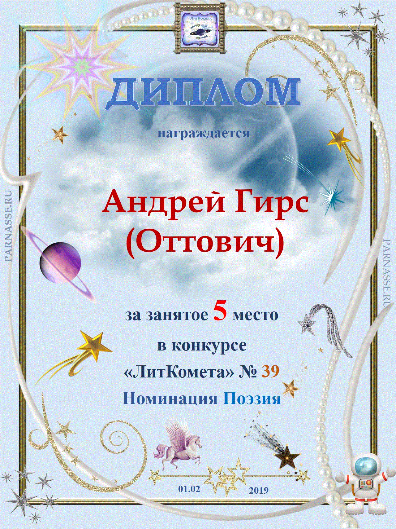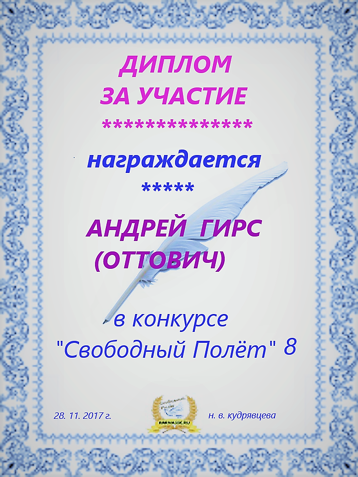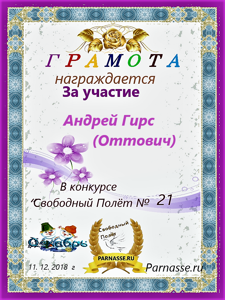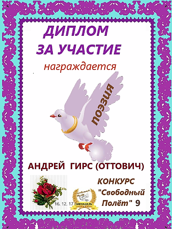 Диплом за 3 место в 87 конкурсе АКРОСТИХА (Альтернатива)!