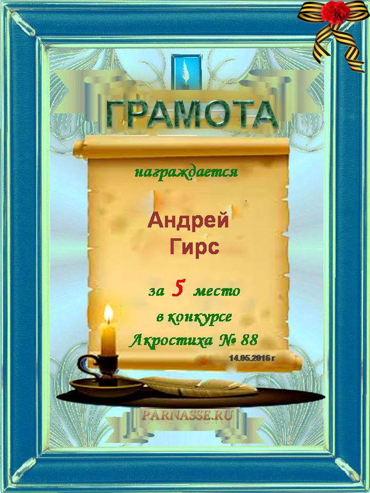 Грамота за 5 место в 88 конкурсе АКРОСТИХА!
