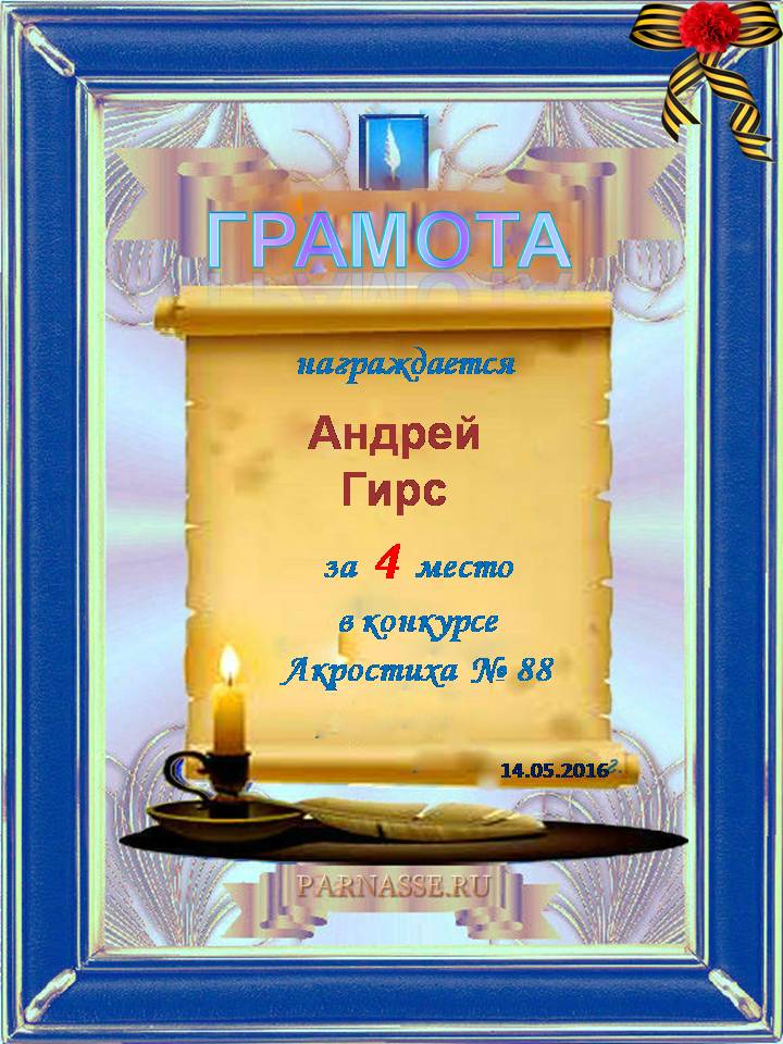 Грамота за 4 место в 88 конкурсе АКРОСТИХА!