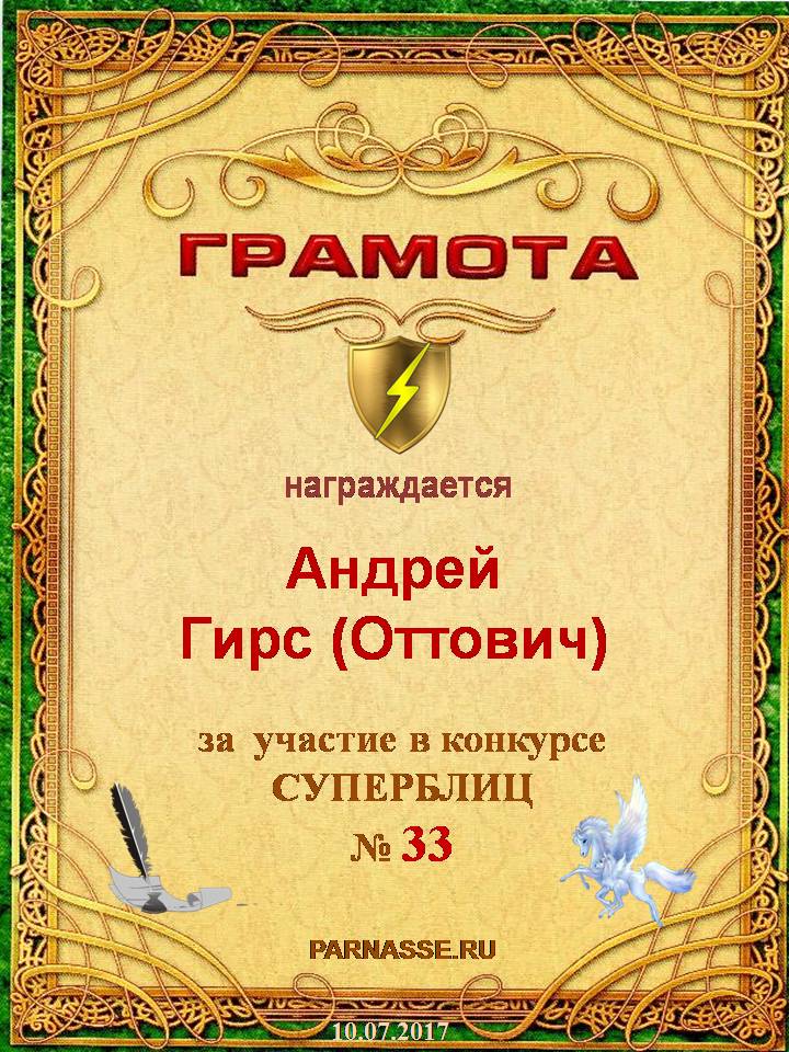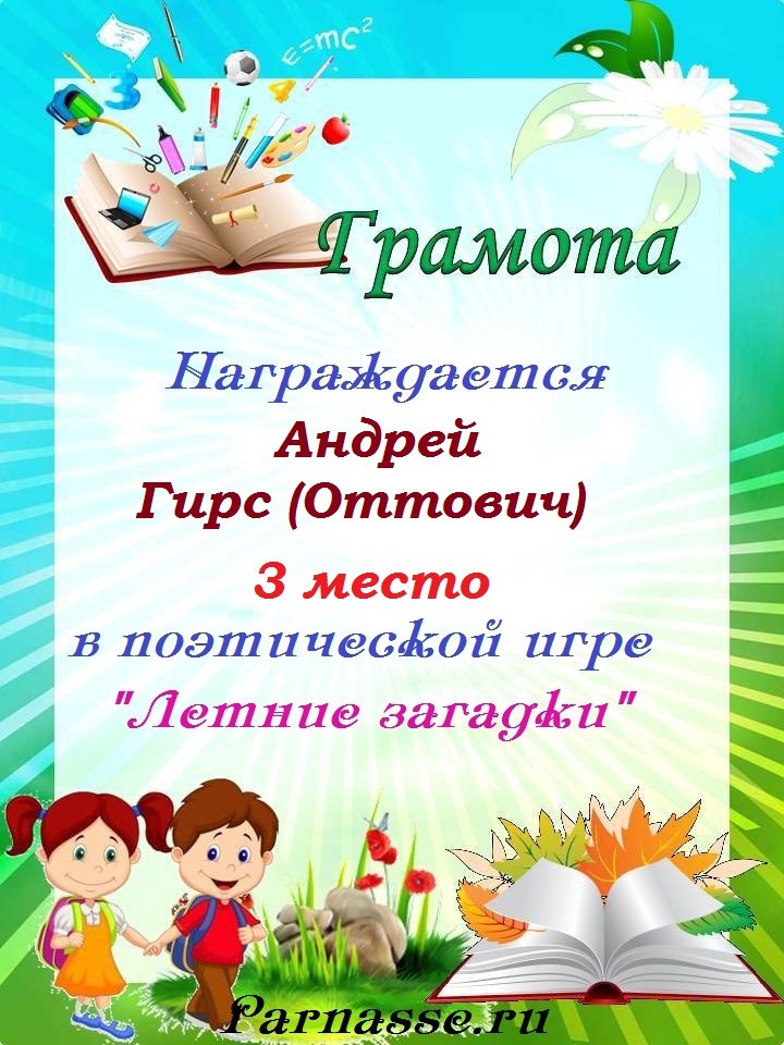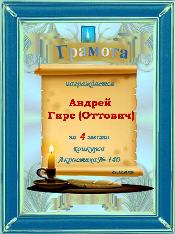 Грамота за 4 место в 93 конкурсе Акростиха.